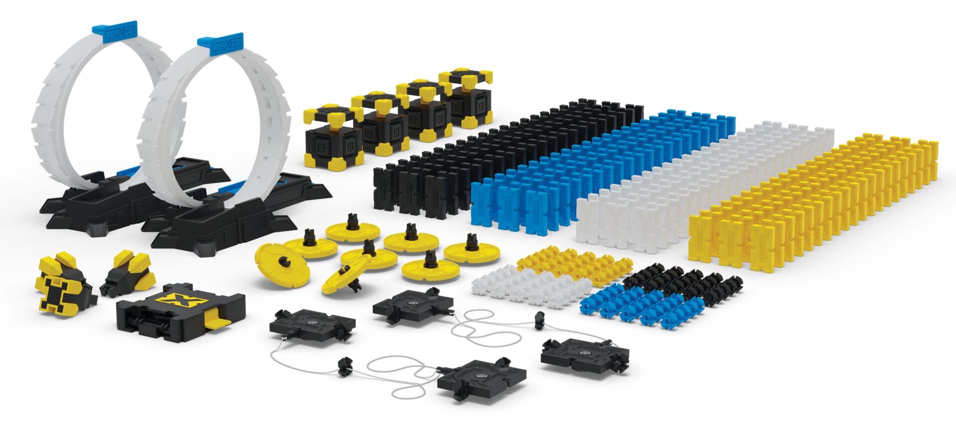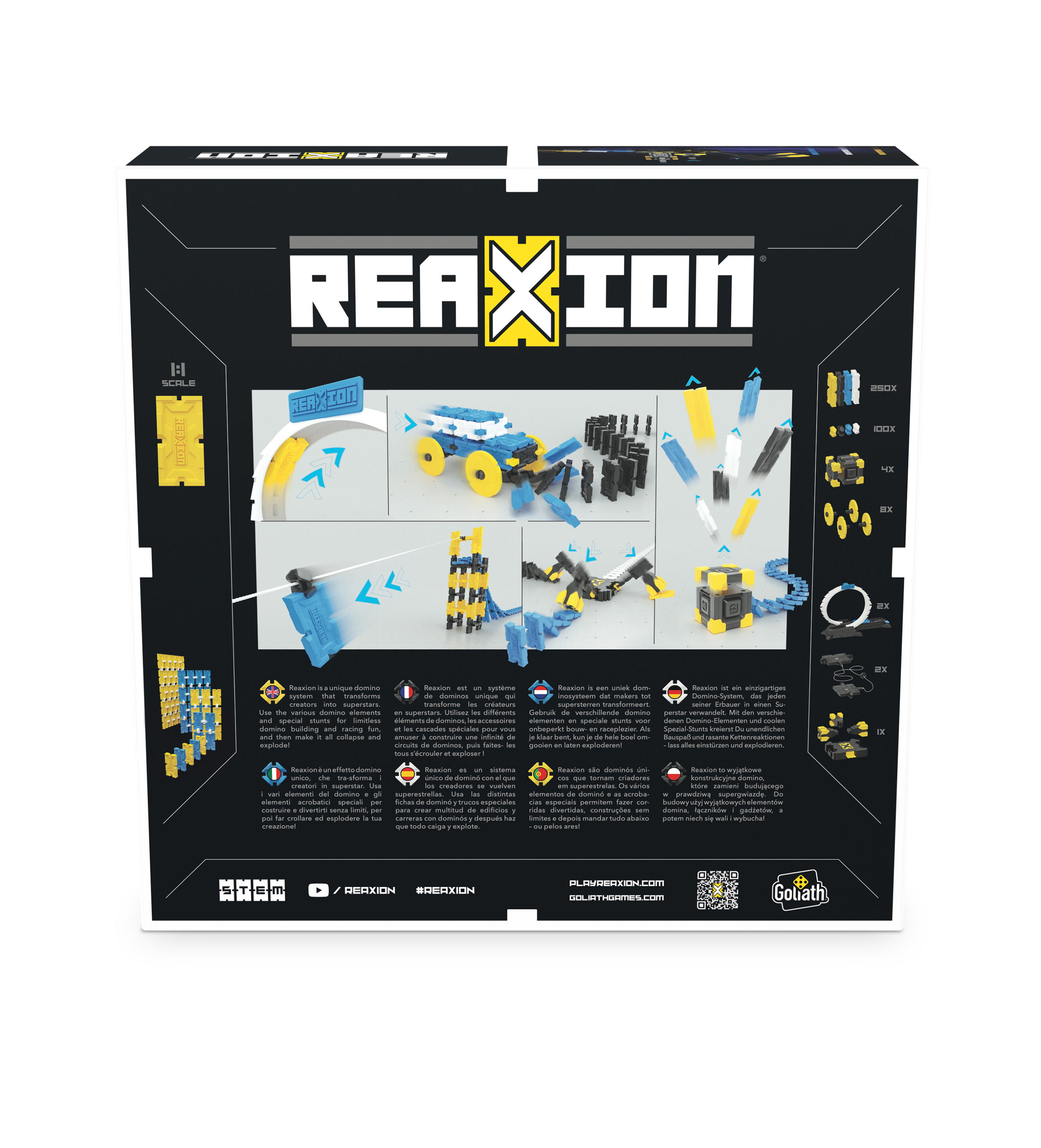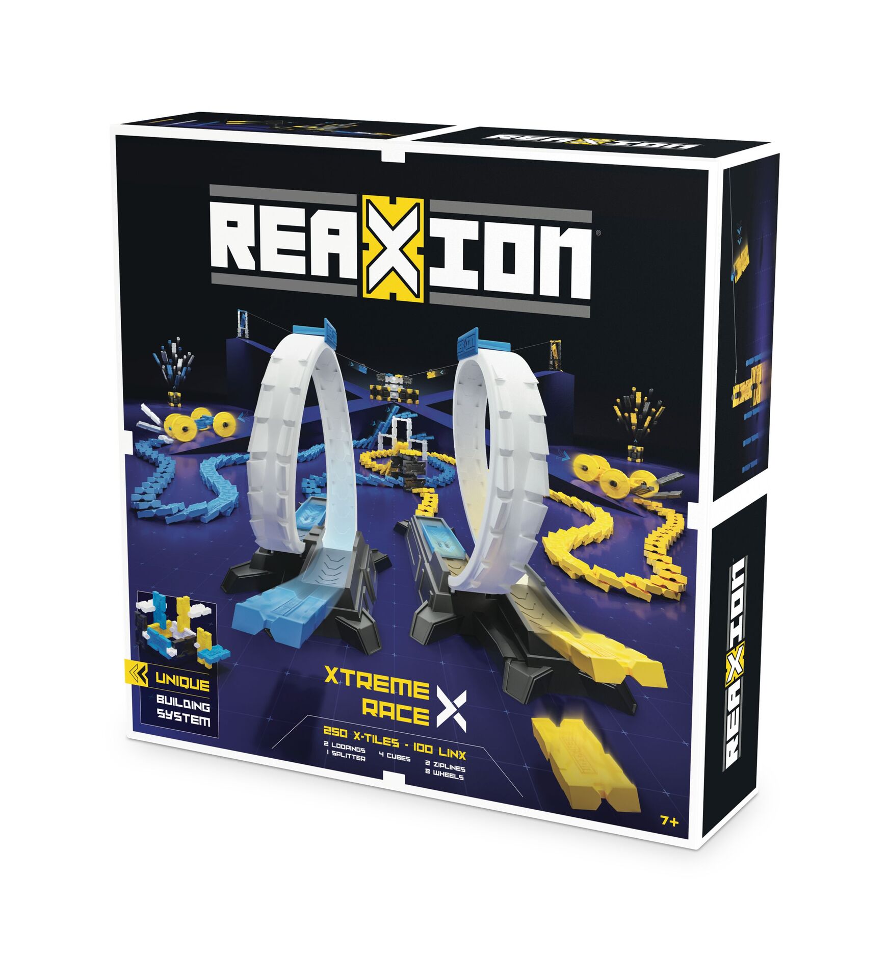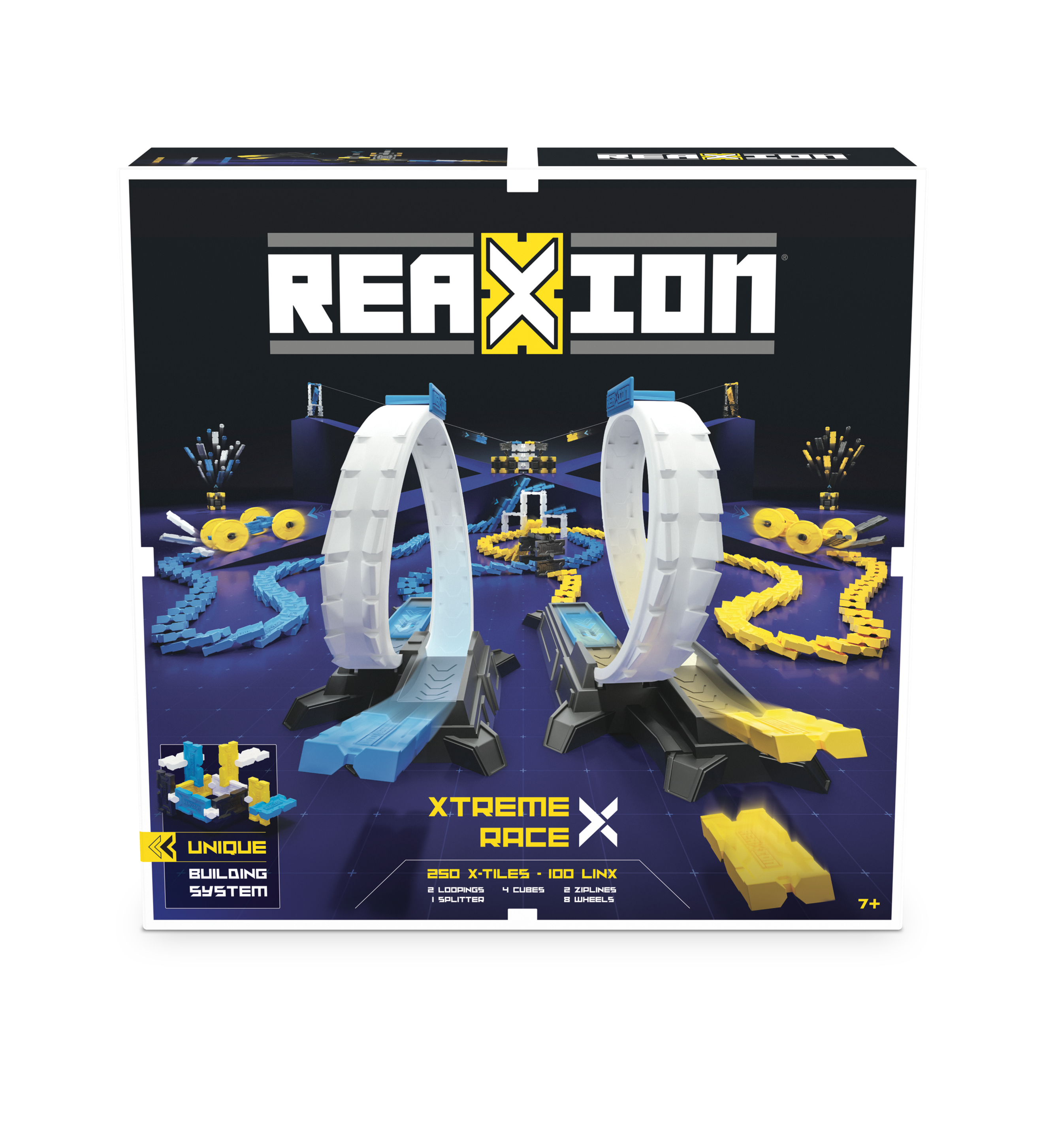 La boîte contient 300 Reaxion, 60 linX, 2 bases de pont 3 cubes “action”, 2 plateformes tournantes (“spinners”), 1 tyrolienne, 3 guides de construction, 3 pistes pour billes.