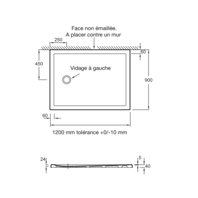 | Libellé | Receveur de douche 120 x 90 JACOB DELAFON Gaspard bonde à gauche + bonde + kit de réhausse |