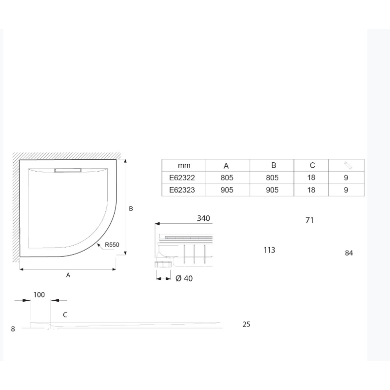 Les caractéristiques techniques du receveur de douche flight pure quart de rond de Jacob Delafon :