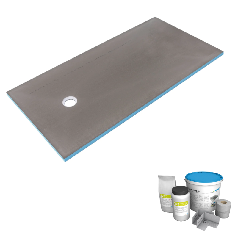 Receveur de douche à carreler 140 x 90 WEDI Fundo Primo rectangle écoulement excentré + kit d'étancheité