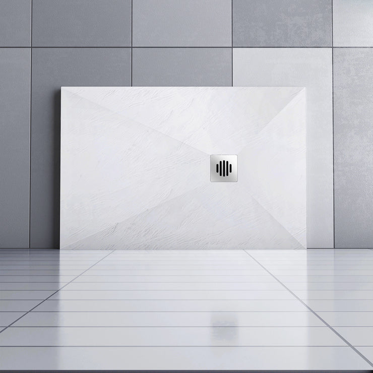 Libellé Receveur de douche rectangulaire - 100x90cm - Blanc - Extra plat - H.3cm - anti dérapant - AICA - Avec grille en Inox