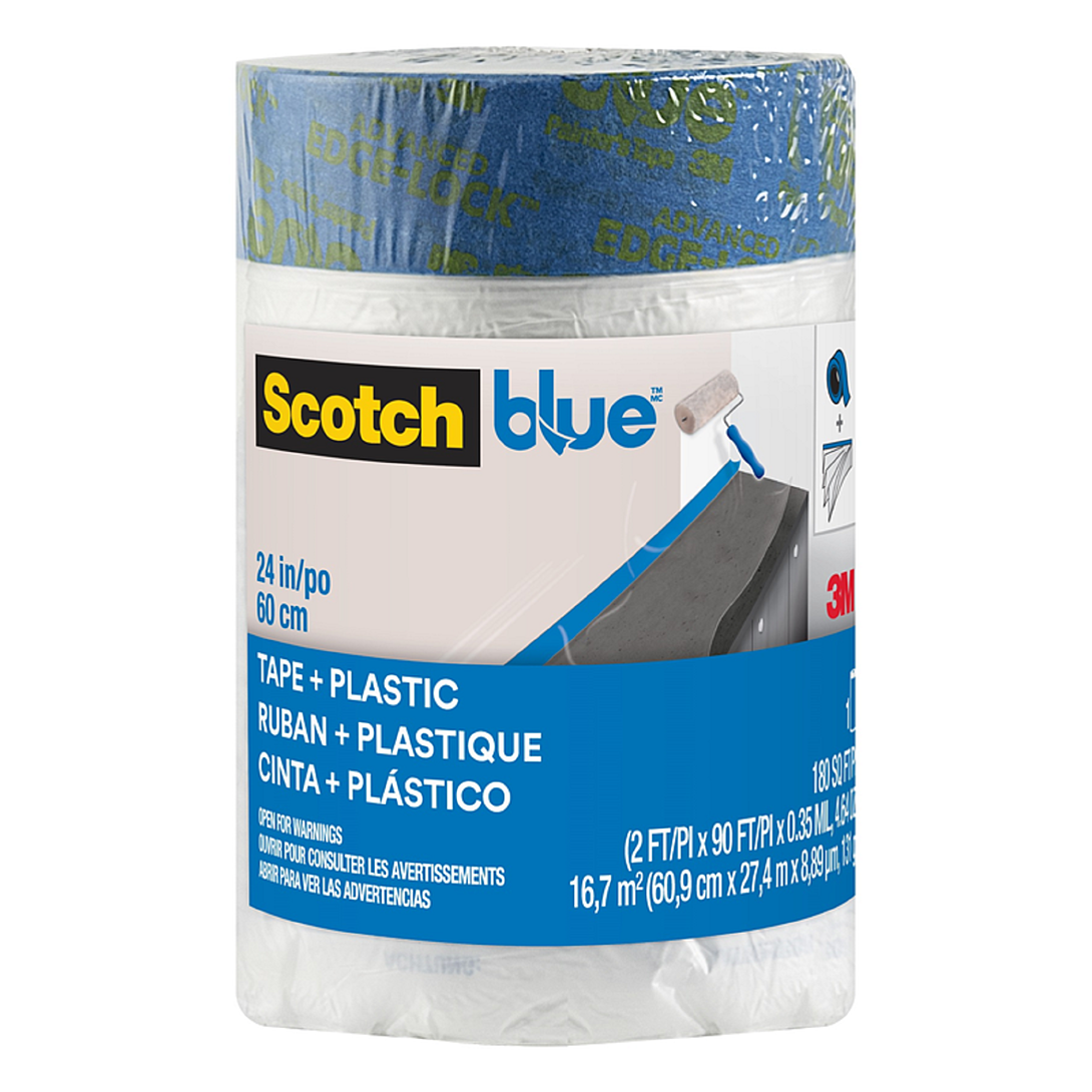 Recharge pour dévidoir de bâche plastique pré-adhésivée ScotchBlue™, pour une meilleure précision et protection pendant la peinture. Le dévidoir compact inclut une lisière de ruban de masquage premium ScotchBlue™ intégrée à la bâche de protection en film plastique électrostatique. Contient une lisière avec un ruban de masquage doté de la technologie 3M finitions parfaites pour des lignes de peinture nettes. Ruban de masquage premium permettant un retrait sans traces jusqu'à 14 jours après l'application. L'adhérence électrostatique facilite la pose et l'ajustement, tout en maintenant le film en place. Offre une protection contre les gouttes, les bavures et les éclaboussures accidentelles. La protection en plastique se déroule jusqu'à 60,9 cm de largeur (couverture totale de 16,4 m² par rouleau). Facile à dérouler et à découper à la longueur voulue grâce à la lame intégrée. Permet de protéger les plinthes et les sols, les fenêtres dans leur totalité ou seulement un carreau, les portes et autres surfaces lors de la peinture.