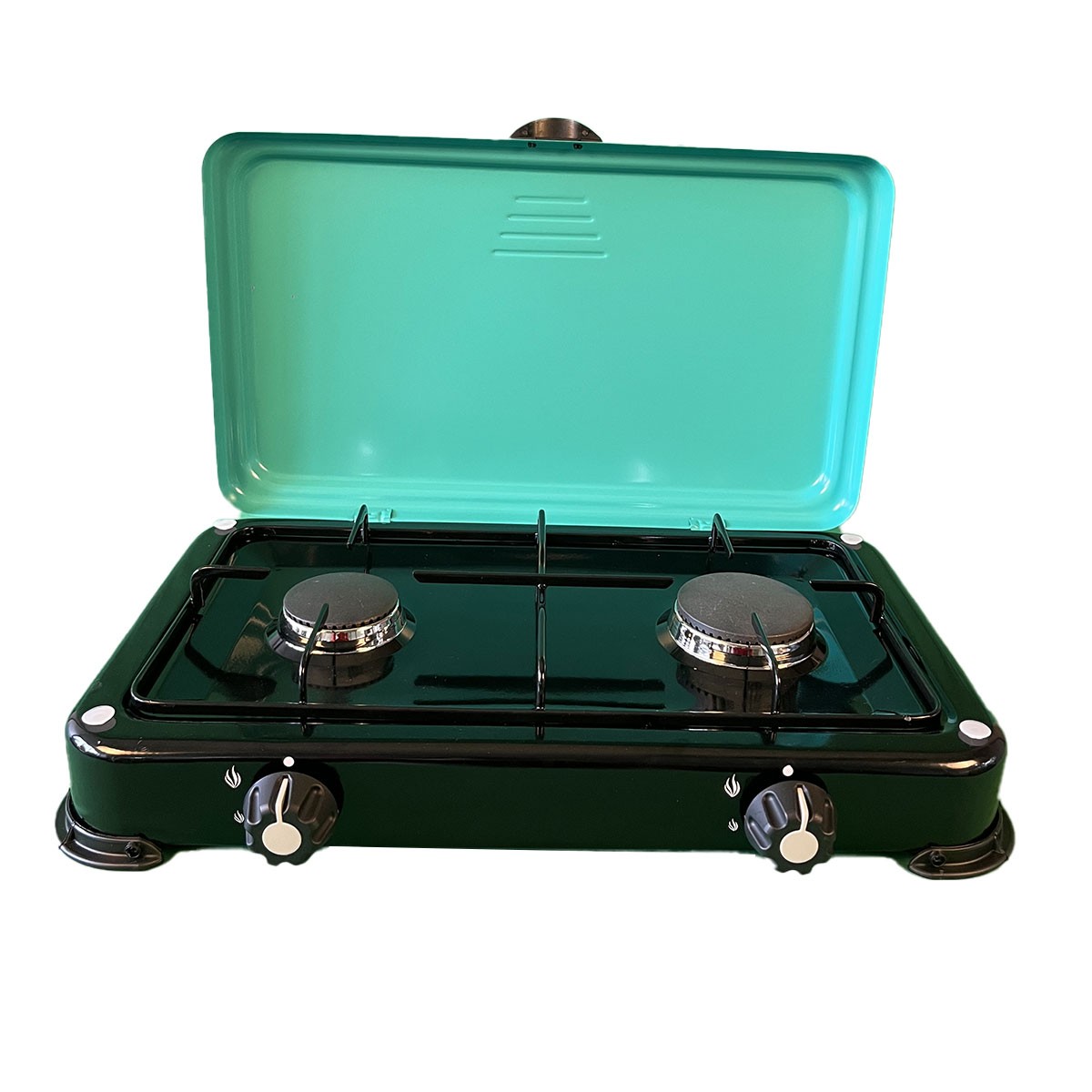 Réchaud à gaz 2 feux INTEC GOLD II - 3200W, idéal pour cuisiner facilement à la maison, en camping ou en extérieur. Compact, puissant et pratique, il offre une chauffe rapide et homogène grâce à ses deux brûleurs en fonte amovibles de 1500 W et 1700 W. La grille en fonte assure stabilité et robustesse, tandis que la molette permet un réglage précis de la flamme. Sa connexion à vis normalisée offre une installation simple et sûre, compatible avec le gaz butane ou propane (non compatible gaz de ville).