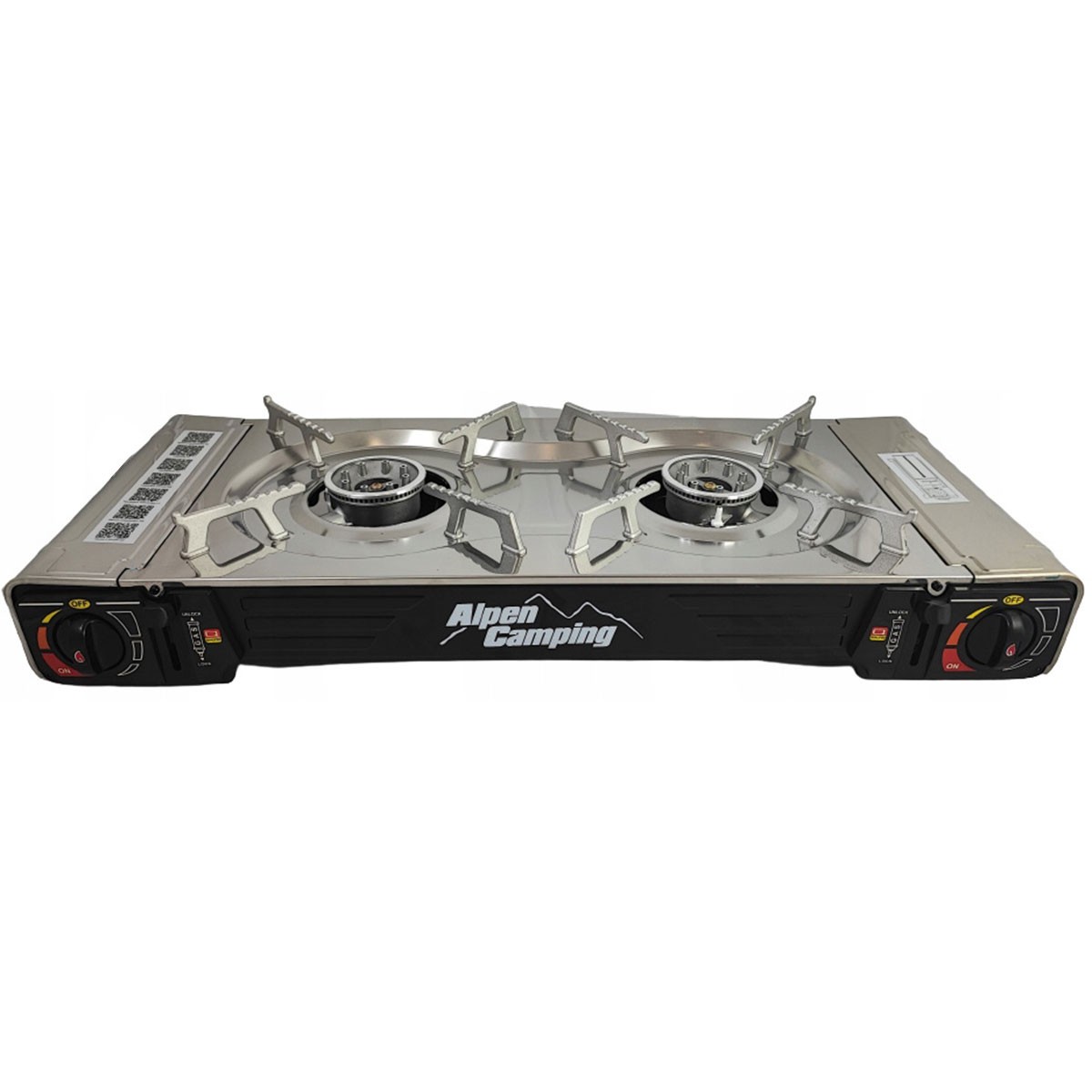 Libellé Réchaud à gaz 2 feux 4400W INOX + Cartouches de gaz ALPEN Camping
