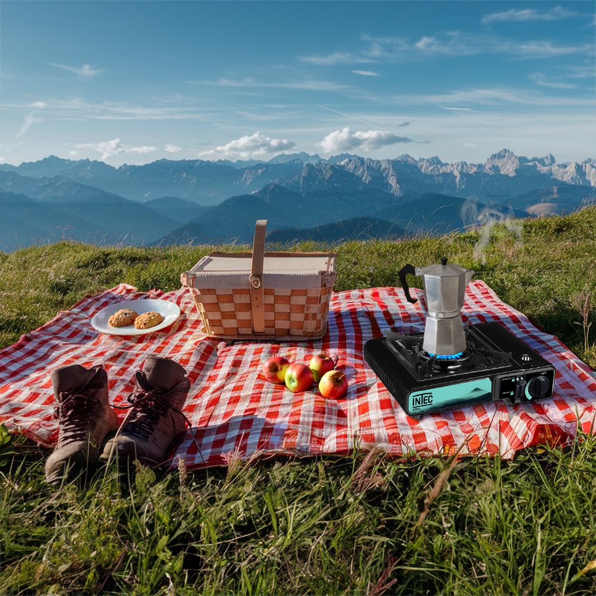 Réchaud à gaz 2200W + 4 Cartouches gaz butane Camping Road trips Piezo Mallette Etna INTEC