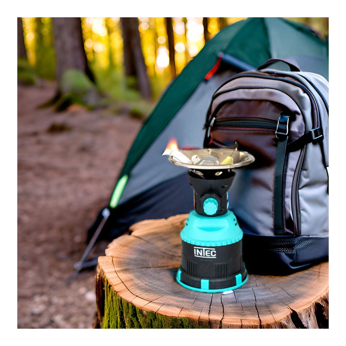 Le réchaud à gaz portable INTEC est doté d'un allumage piézo électrique , d'une coque en ABS et d'une plaque en acier inoxydable. La plaque permet une bonne stabilisation des casseroles ou poêles.