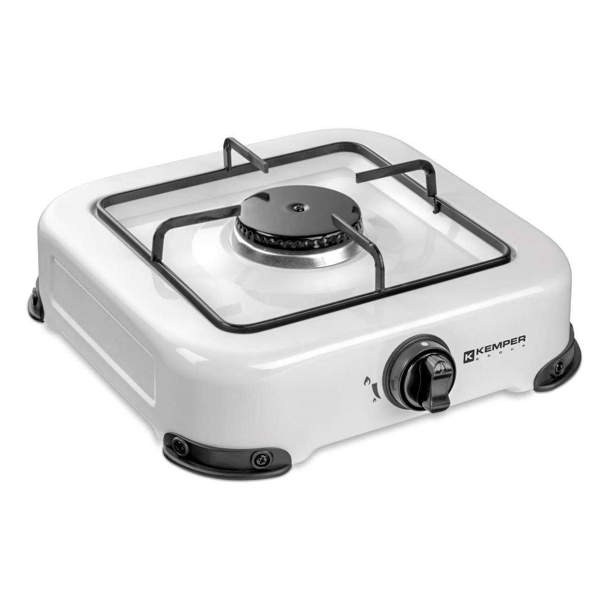 Réchaud gaz portable 1 feu 1300W Blanc laqué Plaque de cuisson KEMPER