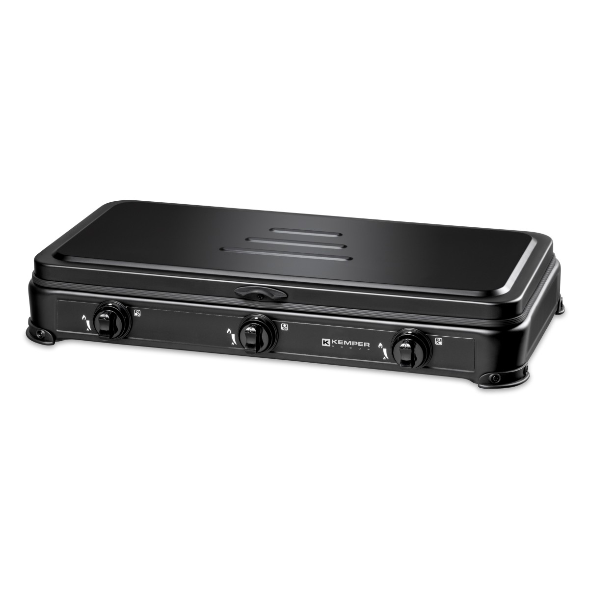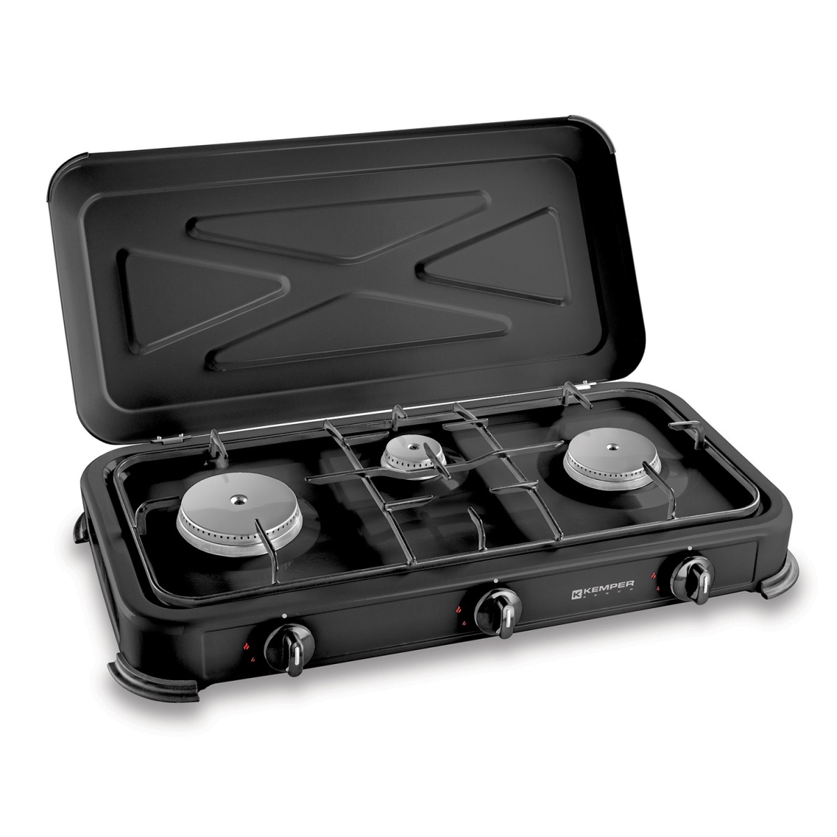 Libellé Réchaud gaz portable 3 feux 3450W Noir Couvercle Plaque de cuisson KEMPER