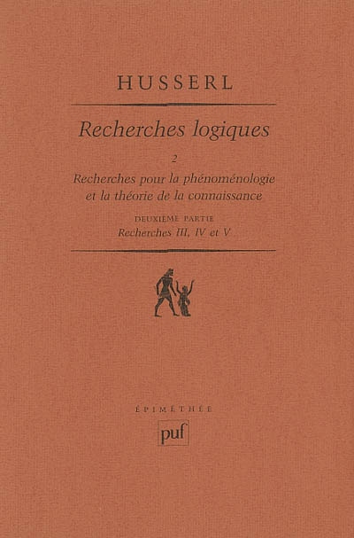 | Libellé | Recherches logiques. Tome 2, volume 2 - Recherches pour la phénoménologie et la théorie de la connaissance. Deuxième partie : recherches III, IV et V |