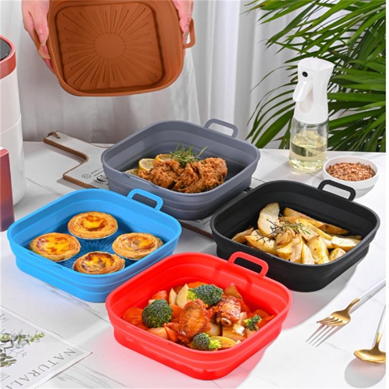 Ce récipient en silicone alimentaire s'intègre parfaitement dans la friteuse et évite les résidus alimentaires collants et brûlés dans votre friteuse à air. Le récipient est réutilisable et lavable en machine. Le bord surélevé maintient les aliments en place et retient les miettes et l'excès de graisse. La forme peut être compressée afin de prendre moins de place lorsqu'elle n'est pas utilisée.