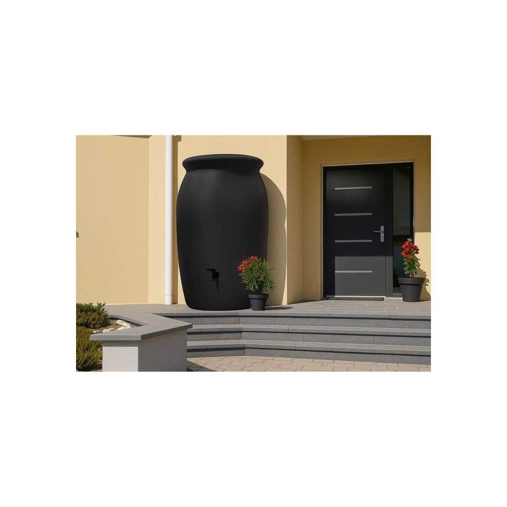 Récupérateur à eau Jarre Toscan 2000 litres anthracite livré complet avec couvercle, robinet et kit raccord