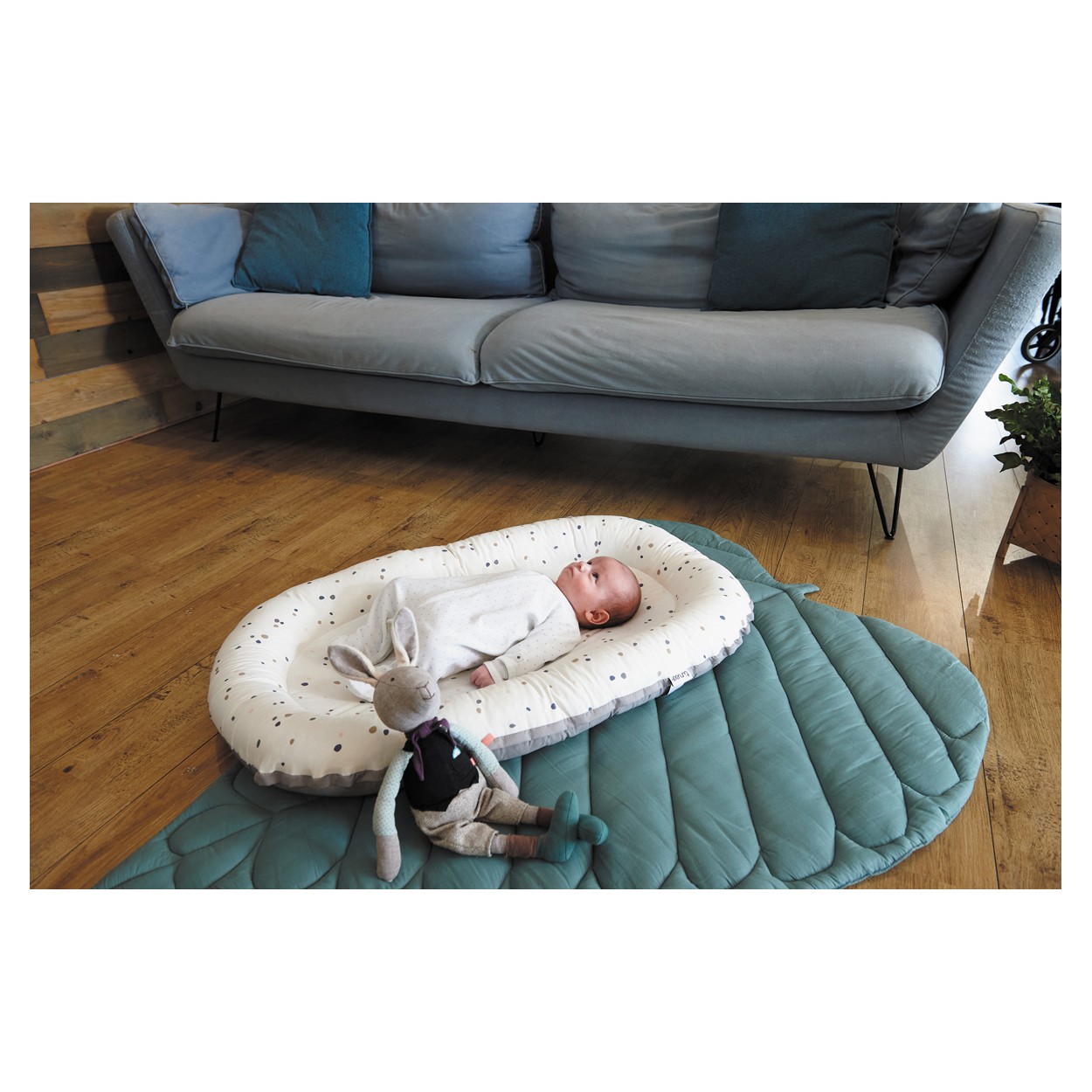 Le réducteur de lit qui procure un sentiment de réconfort à votre bébéBébé passe 9 mois dans le ventre de sa maman, son arrivée au monde est un chamboulement pour ses parents mais aussi pour lui. Son espace de vie se trouve sans limite et il peut être en manque de repères. Le réducteur de lit Tinéo vise à réduire son espace de couchage afin de lui créer un sentiment réconfortant, ressemblant à celui qu'il à connu durant ces 9 mois in utero.Idéal pour les premières nuits de bébé, vous pouvez placer ce réducteur de lit réversible dans le lit de bébé sur son matelas ou dans le berceau. En journée, vous pouvez aussi l'utiliser en le plaçant sur un tapis d'éveil ou dans un parc, toujours sous la surveillance d'un adulte.Un réducteur de lit bébé réversible et déhoussableRéversible, le réducteur de lit Tinéo peut s'utiliser des 2 côtés :Une face unie de coloris gris clair