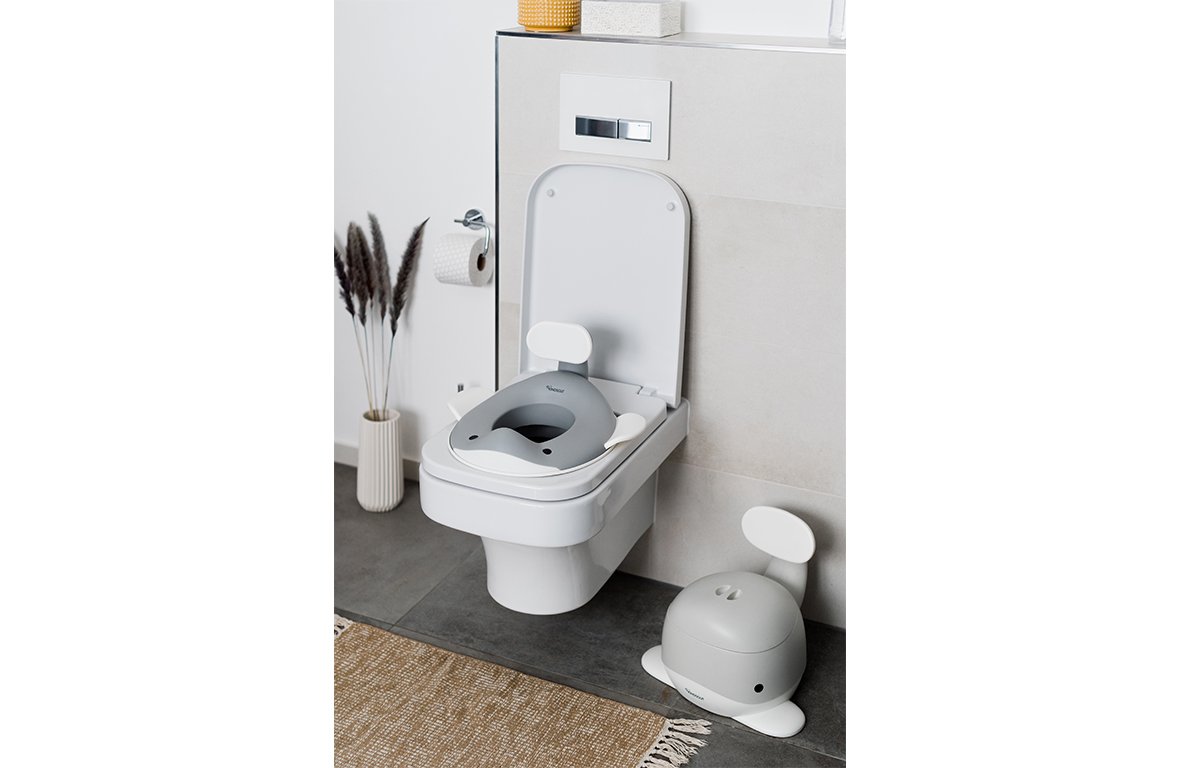 Le reducteur de toilettes antidérapant au design baleine de Kindsgut allie le meilleur confort à un design attrayant et ne fait pas seulement briller les yeux des enfants. La famille des baleines de Kindsgut compte enfin un nouveau membre : après le "Potty", le petit pot en forme de baleine, qui est devenu un best-seller très apprécié, il existe maintenant un reducteur de WC au look très similaire. Celui-ci peut être utilisé comme produit de suivi, comme alternative ou parallèlement au pot - et garantit un plaisir animal lors de l'entraînement aux toilettes. Le reducteur ne séduit pas seulement par son design, disponible en plusieurs couleurs discrètes. Il facilite également l'accès autonome de ton enfant aux toilettes, car avec le rehausseur Wal, ton enfant peut non seulement s'asseoir confortablement et en toute sécurité sur les toilettes, mais aussi s'y appuyer confortablement. Grâce à son faible poids, le rehausseur est facile à utiliser (et à ranger) et est également un compagnon idéal pour les déplacements. Avec ses couleurs discrètes et adaptées aux enfants, le rehausseur de WC s'intègre parfaitement dans le look des salles de bains modernes. Un must have, pas seulement pour tous les fans de baleines et de potty ! Deux fois récompensé : Nous sommes particulièrement fiers que notre rehausseur de toilettes Wal ait déjà été récompensé par deux prix ! Il a reçu le TOP10 Baby & Kind 2022 Award, décerné chaque année par la Fédération allemande des détaillants en jouets (Bundesverband des Spielwaren-Einzelhandels e.V.) pour dix produits innovants. En outre, nous avons reçu la médaille d'or du German Design Award dans la catégorie "Product Design" pour notre produit best-seller. La médaille d'or du German Design Award est la plus haute distinction décernée à une prestation de design excellente, globale et innovante. L'aide à la fois pratique et mignonne pour l'apprentissage de la propreté pour les enfants a convaincu le jury de haut niveau du Conseil du Design par son apparence et sa fonctionnalité bien pensée. Un confort optimal : le siège anatomique et le dossier assurent une assise confortable à ton enfant. Le rehausseur de toilettes convient aussi bien aux filles qu'aux garçons. Design bien pensé : le rehausseur de toilettes pour enfants est utilisable de manière universelle sur les lunettes de toilettes standard et dispose d'une protection supplémentaire contre les éclaboussures ainsi que d'un dessous antidérapant. Qualité durable : même les frères et sœurs peuvent continuer à profiter de ce rehausseur de toilettes pour baleines de grande qualité. Matériaux écologiques : l'accessoire est testé, certifié et exempt de substances nocives - le meilleur pour les plus petits ! Nettoyage facile : Le rehausseur au design mignon de baleine peut être nettoyé facilement sous l'eau courante. Pour tous les goûts : le reducteur de WC est disponible en différentes couleurs, ce qui permet à tous les goûts, aux garçons comme aux filles, de trouver leur couleur préférée. L'amour du détail : le rehausseur est joliment emballé et livré dans un carton Kindsgut de haute qualité. Kindsgut X whales.org : L'environnement et l'avenir de nos enfants nous tiennent à cœur, c'est pourquoi nous faisons don de baleines à l'organisation de renommée internationale whales.org pour chaque rehausseur de toilettes vendu. Nous apportons ainsi une contribution importante à la protection des plus grands mammifères et à la préservation des océans. Poids de l'article : env. 540 g Dimensions de l'article : 40 x 22 x 38 cm /dimensions intérieures : 14 x 18,5 cm Recommandé à partir de l'âge de 12 mois