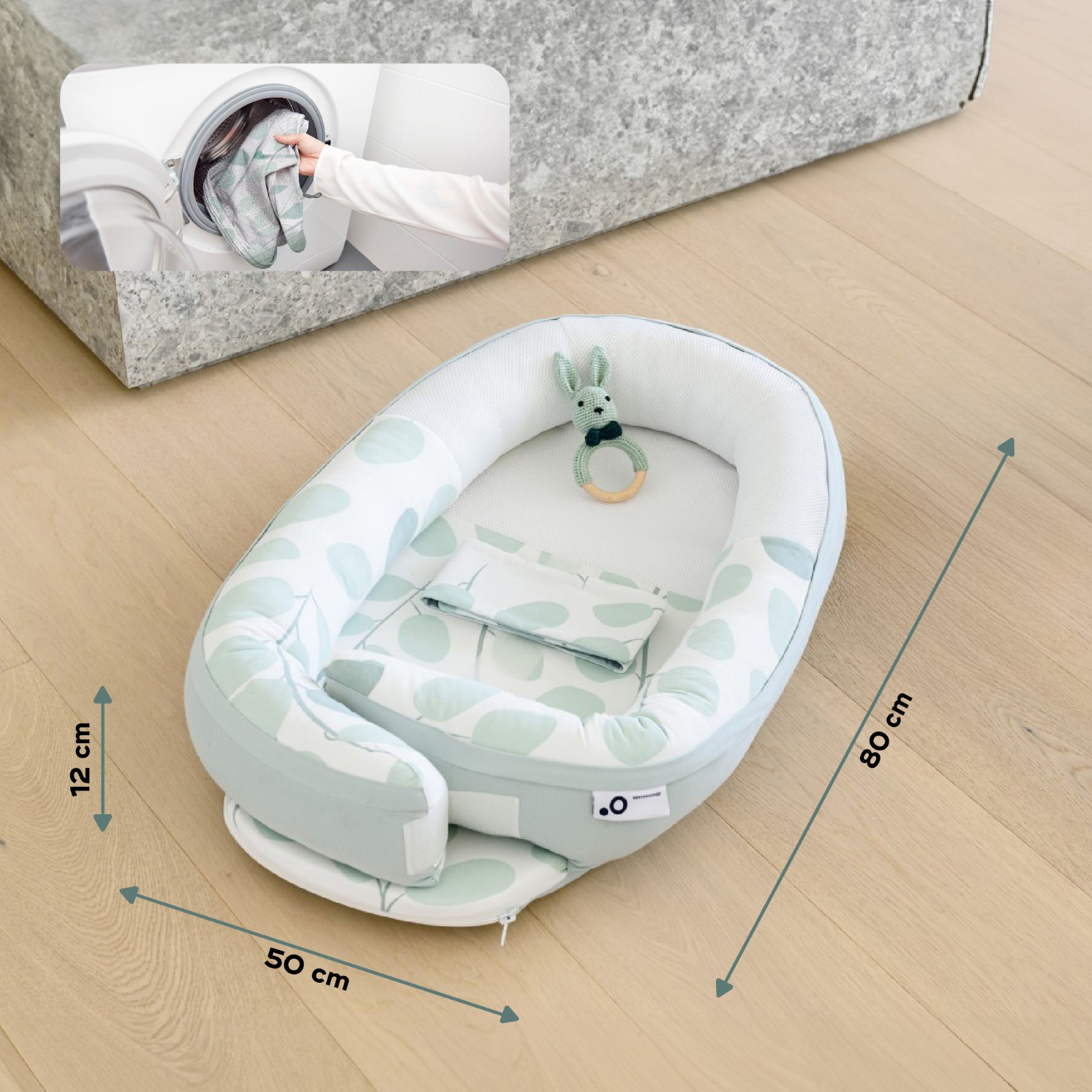 À la naissance, votre bébé peut se sentir perturbé par son nouvel environnement. Le réducteur nouveau-né doomoo cocoon a été pensé pour le rassurer. Il crée un espace sur mesure et confortable pour votre bébé. Ce réducteur nouveau-né doomoo Cocoon est une vraie bulle de douceur pour votre bébé. Au niveau de la tête, le Cocoon est conçu en tissu 3D micro-respirant. Un vrai plus pour le bien-être et la sécurité de votre bébé. La partie dorsale et les rebords sont en jersey de coton organique pour respecter la peau fragile de votre enfant. Doté d'une ceinture de maintien amovible, votre bébé est confortablement installé sur le dos (suivant la recommandation de l'OMS), en toute sécurité. Nous recommandons de ne plus utiliser la ceinture après les 3 mois de votre enfant. Évolutif, le réducteur Cocoon s'adapte à la croissance de votre bébé. Le bas du nid s'ouvre pour que ses jambes ne soient pas à l'étroit. Le réducteur nouveau-né doomoo Cocoon est pratique et hygiénique. Il est déhoussable et lavable en machine.
