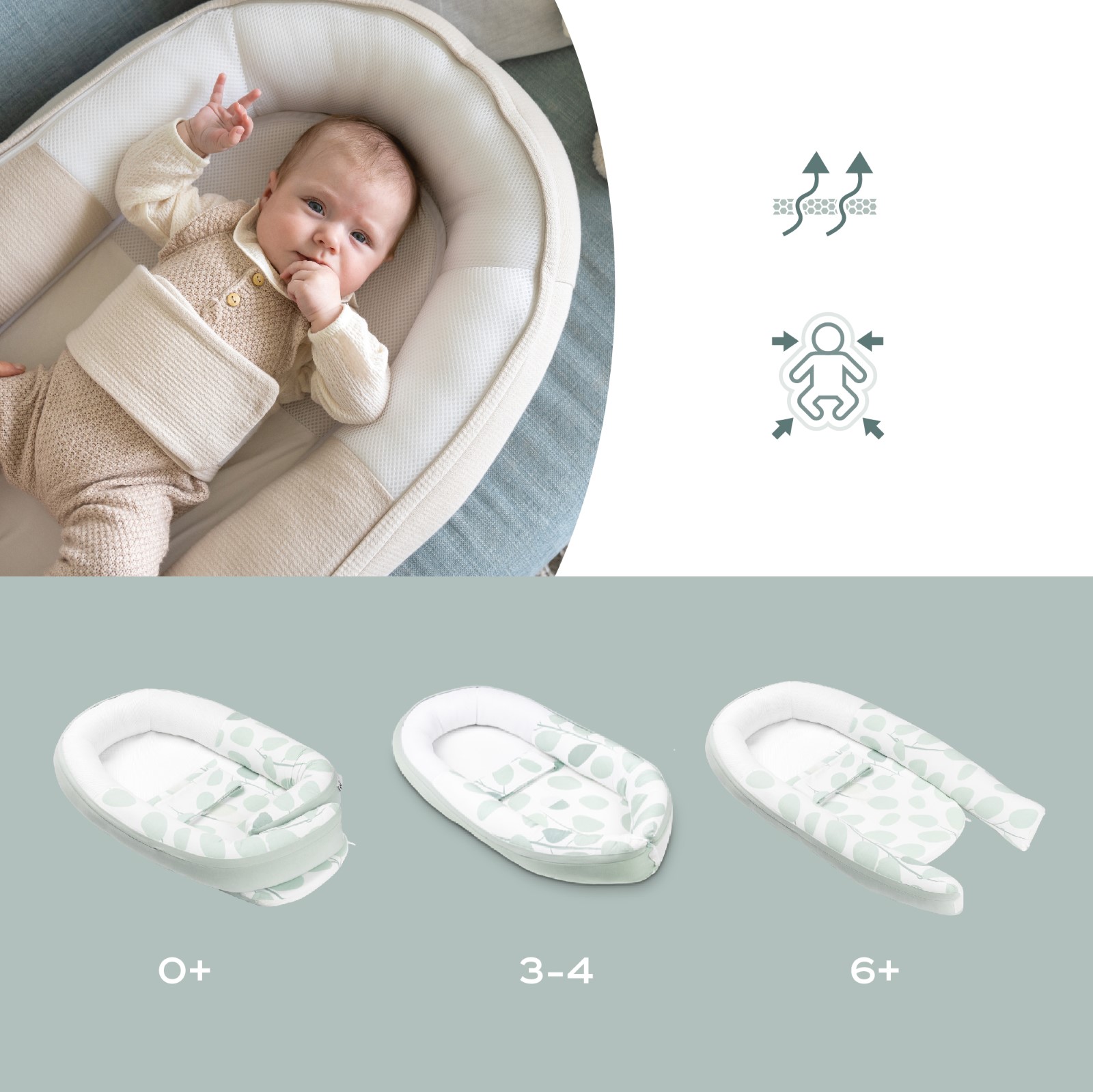 À la naissance, votre bébé peut se sentir perturbé par son nouvel environnement. Le réducteur nouveau-né doomoo cocoon a été pensé pour le rassurer. Il crée un espace sur mesure et confortable pour votre bébé. Ce réducteur nouveau-né doomoo Cocoon est une vraie bulle de douceur pour votre bébé. Au niveau de la tête, le Cocoon est conçu en tissu 3D micro-respirant. Un vrai plus pour le bien-être et la sécurité de votre bébé. La partie dorsale et les rebords sont en jersey de coton organique pour respecter la peau fragile de votre enfant. Doté d'une ceinture de maintien amovible, votre bébé est confortablement installé sur le dos (suivant la recommandation de l'OMS), en toute sécurité. Nous recommandons de ne plus utiliser la ceinture après les 3 mois de votre enfant. Évolutif, le réducteur Cocoon s'adapte à la croissance de votre bébé. Le bas du nid s'ouvre pour que ses jambes ne soient pas à l'étroit. Le réducteur nouveau-né doomoo Cocoon est pratique et hygiénique. Il est déhoussable et lavable en machine.