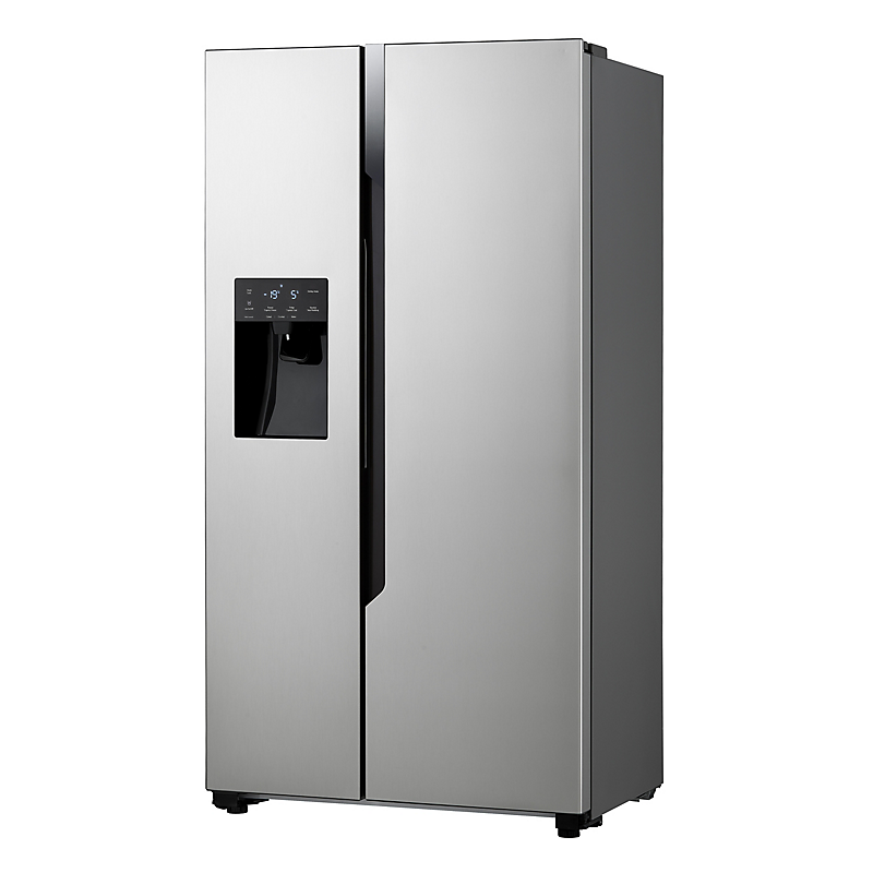 Réfrigérateur américain Capacité totale 562 L Classe E Réfrigérateur No-Frost : 371 L Clayettes verre Eclairage LED Congélateur No-Frost : 191 L Fonction Congélation Express et Réfrigération Express Pouvoir de congélation 12 Kg/24 h Autonomie 6 heures Distributeur d'eau Niveau sonore 42 dB Régulation électronique Alarme porte ouverte Largeur 91 cm Le + : Multi Air Flow, vos aliments conservent une fraîcheur optimale quel que soit l'endroit Coloris inox