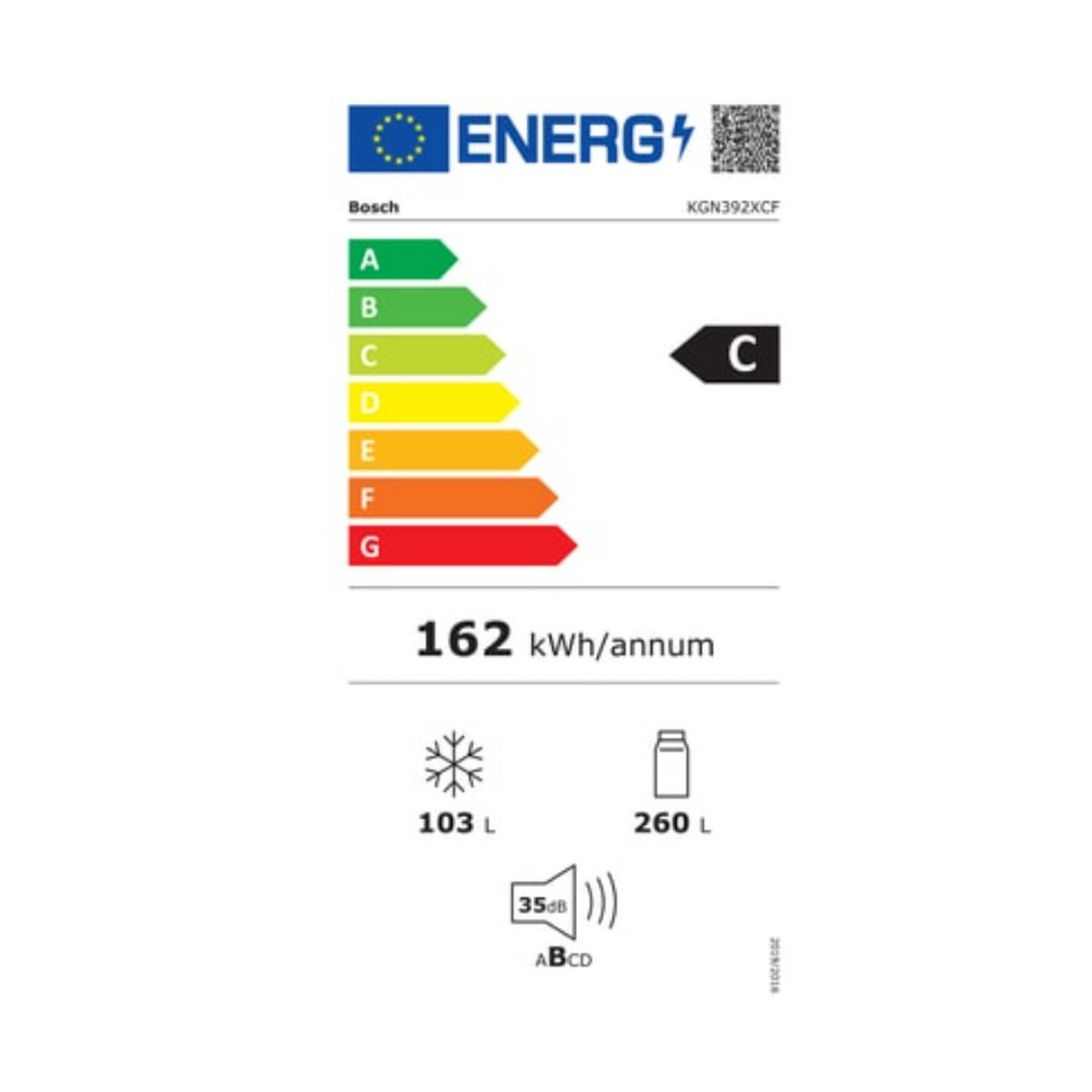 KGN392XCF - réfrigérateur combiné 60cm 363l acier brossé noir - Le réfrigérateur combiné série 4 de Bosch KGN392XCF Total No Frost : conserve vos aliments frais plus longtemps.