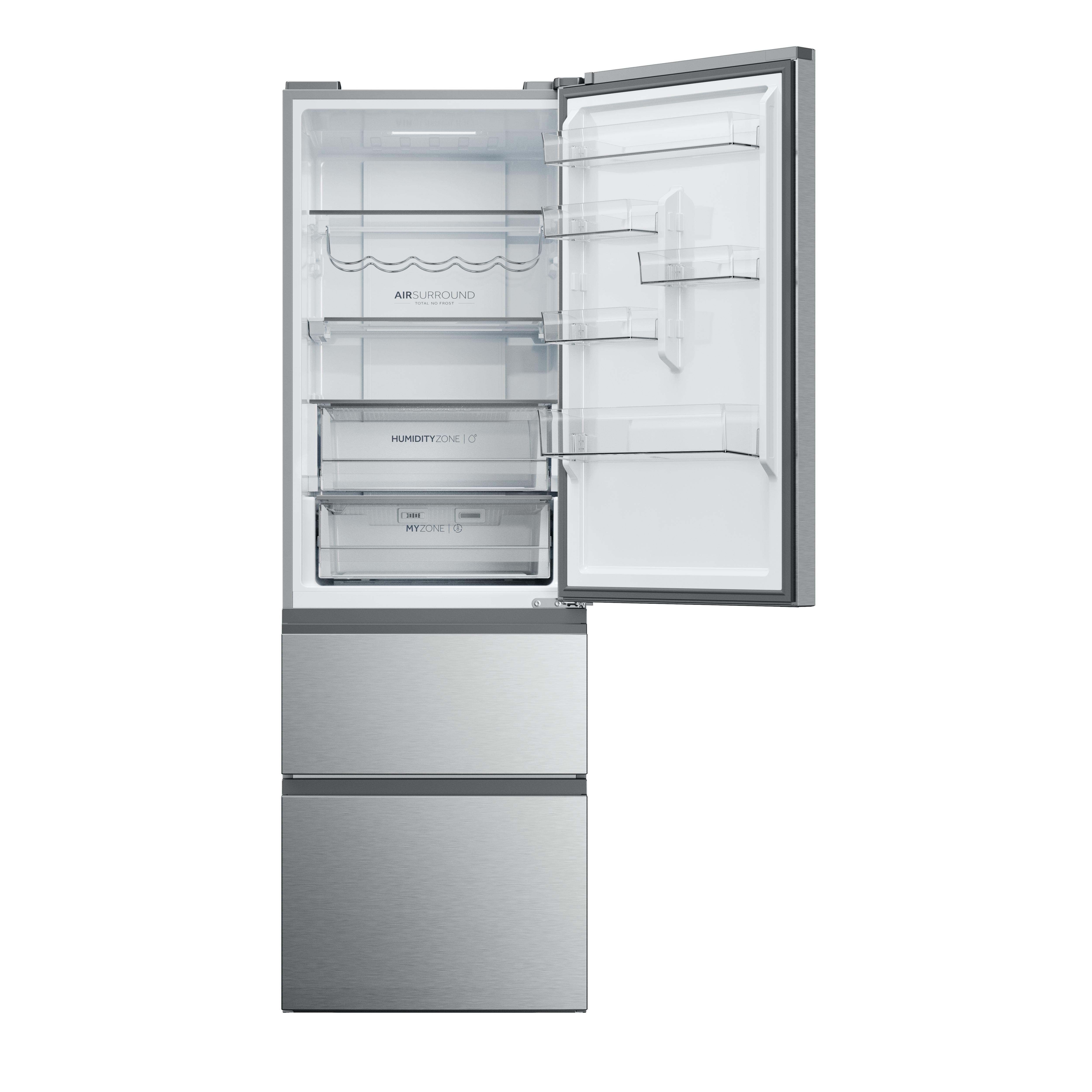 Avec une largeur de 60 cm, les réfrigérateurs à trois portes 60 de Haier disposent d’un système de tiroir de congélation à l'ingénierie impressionnante qui non seulement permet une utilisation plus efficace de l’espace pour vos produits surgelés, mais garantit également un accès rapide à tout le congélateur, ce qui permet d’économiser pas moins de 60 % d’énergie supplémentaire par rapport à des réfrigérateurs-congélateurs situés en bas. Pendant ce temps, les Fresher Techs® ajustent continuellement les conditions pour garantir la conservation de la qualité de vos aliments. Les réfrigérateurs 3D 60 Série 5 de Haier garantissent la parfaite conservation de vos aliments grâce à des zones spécialisées, qui gèrent la température et/ou l’humidité pour conserver vos aliments pendant plus longtemps, et à d’autres solutions de refroidissement et de conservation.