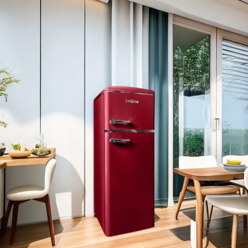 Ce réfrigérateur congélateur Linarie LJDD206BORDEAUX vous offre à la fois un design vintage & un faible encombrement grâce à sa largeur 55 cm!