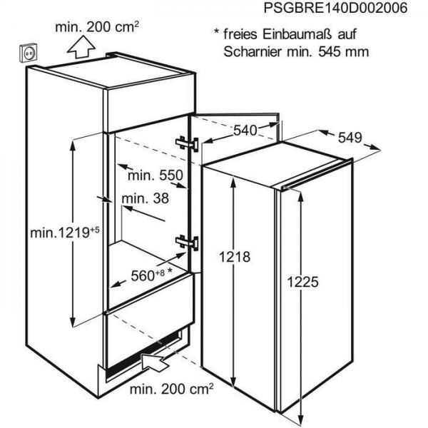 Refrigerateur 1 porte tout utile - INTEGRABLE - Niche d`encastrement : 1225mm - Volume net total:208L - Volume net refrigerateur:208L Classe F - FreeStore(TM)* : Brasseur d`air