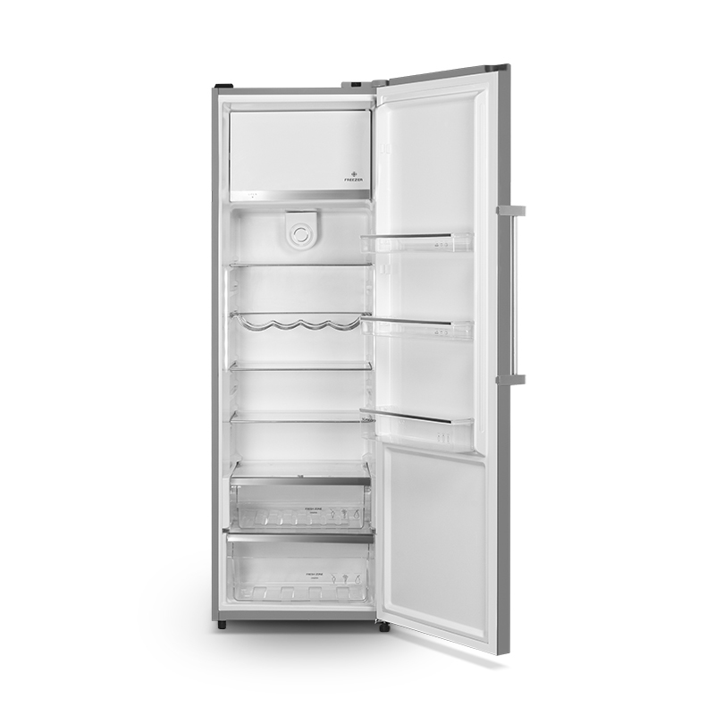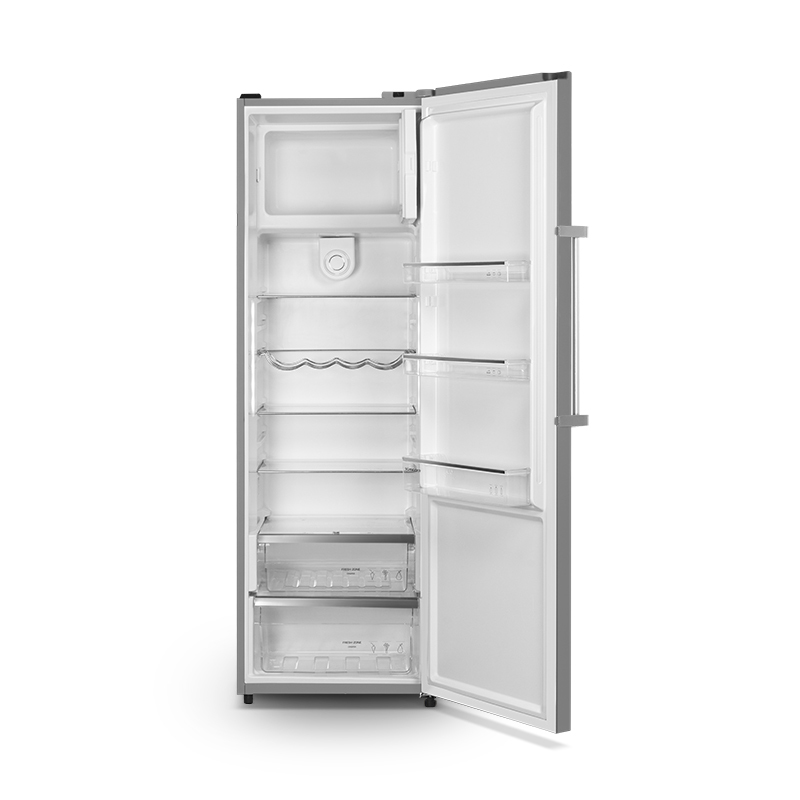 Ce réfrigérateur 1 porte haut de 1,85m vous permet de stocker un très grand volume de 330L pour mieux conserver tous vos aliments. Le réfrigérateur une porte de Schneider est équipé de 5 clayettes en verre, 2 bacs de légumes, 1 porte-bouteilles et de 3 balconnets contre-porte pour ranger vos aliments frais de façon ordonnée.