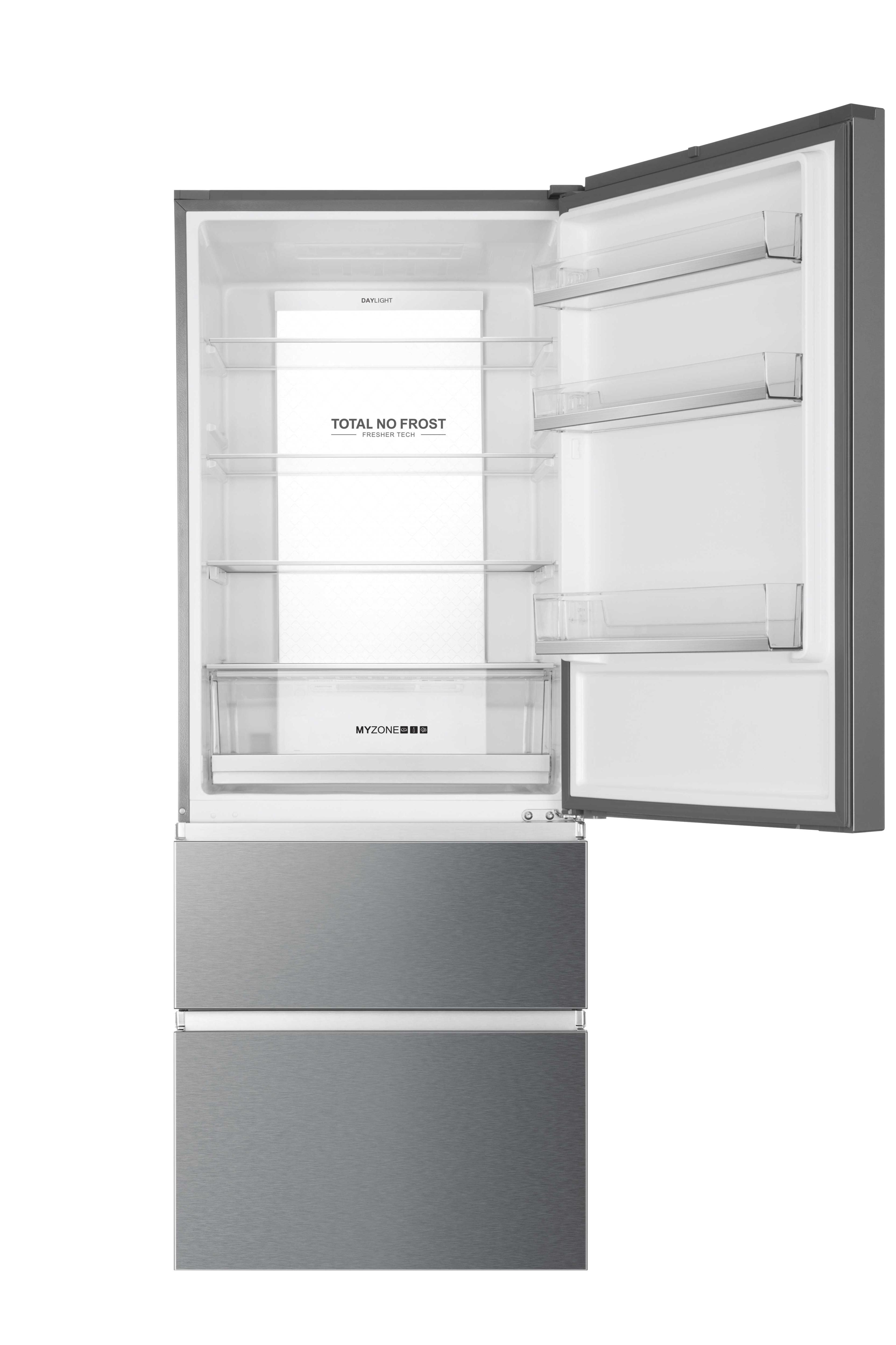 Avec une largeur de 70 cm, les réfrigérateurs à trois portes 70 de Haier disposent d’un système de tiroir de congélation à l'ingénierie impressionnante qui non seulement permet une utilisation plus efficace de l’espace pour vos produits surgelés, mais garantit également un accès rapide à tout le congélateur, ce qui permet d’économiser pas moins de 60 % d’énergie supplémentaire par rapport à des réfrigérateurs-congélateurs situés en bas. Pendant ce temps, les Fresher Techs® ajustent continuellement les conditions pour garantir la conservation de la qualité de vos aliments. Les réfrigérateurs 3D 70 Série 3 de Haier garantissent la parfaite conservation de vos aliments grâce à des zones spécialisées, qui gèrent la température et/ou l’humidité pour conserver vos aliments pendant plus longtemps.