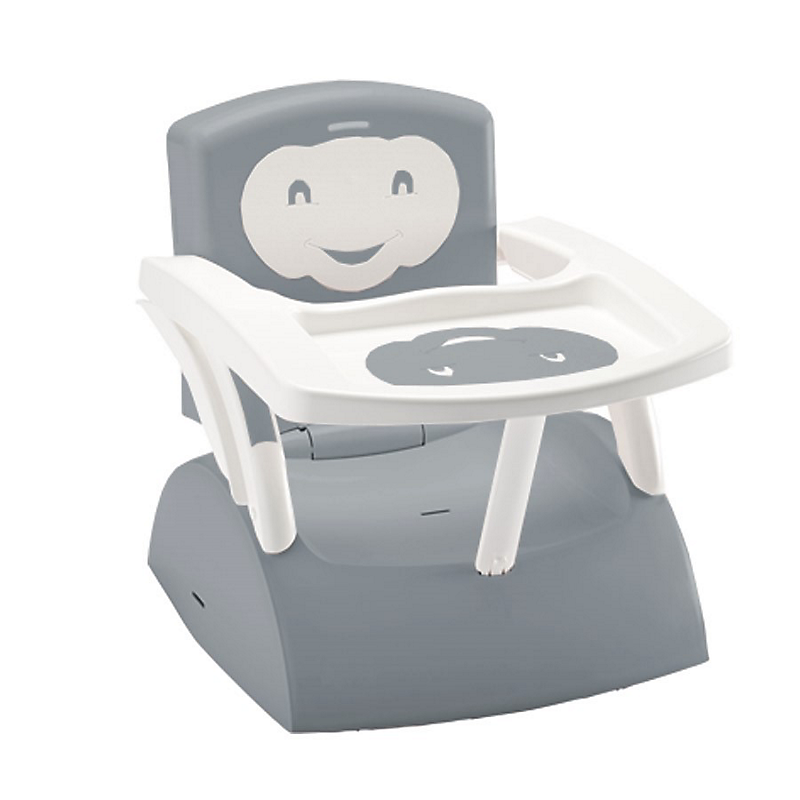 Le rehausseur Thermobaby se plie et se déplie très facilement sans montage. Peu encombrant on l'emporte partout : au restaurant, chez des amis, chez Papi et Mamie. Les pieds du fauteuil se replient sous la base pour l'utilisation en fonction rehausseur. Les sangles se rangent dans le petit compartiment formé par la tablette et le dossier. Il s'utilise avec ou sans tablette, la partie rehausseur est destinée aux enfants capables de se tenir assis tout seuls, jusqu'à 36 mois ou un poids maximum de 15kg.