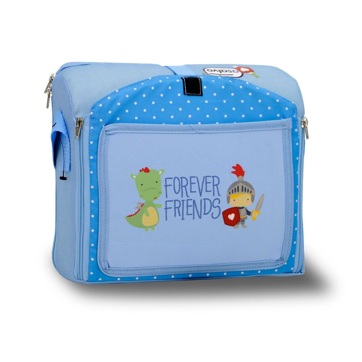 Textile haute densité. Chaise haute à fixer sur une chaise. Poignée de transport. Hauteur dossier 25 cm. Harnais de sécurité. Poche intégrée.