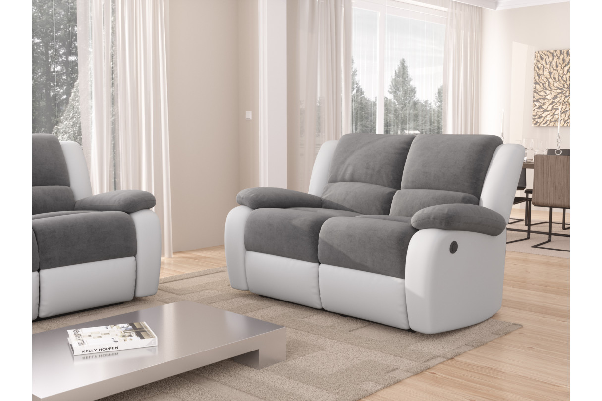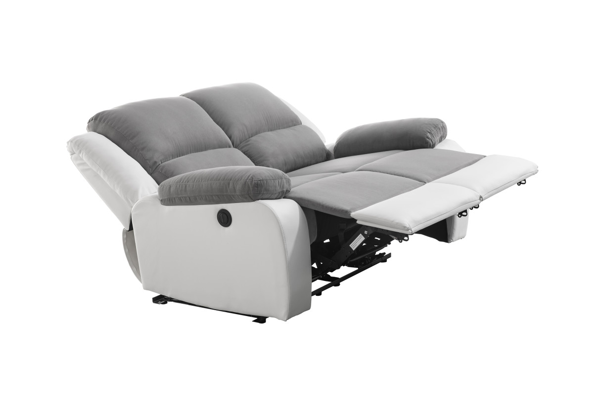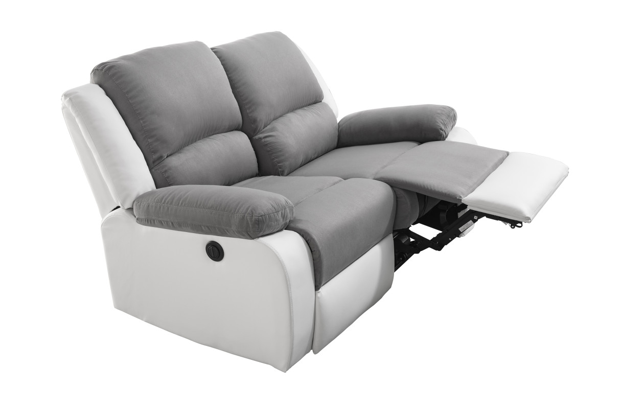 RELAXXO - Canapé de Relaxation électrique 2 places Microfibre et Simili LEO - Blanc et gris