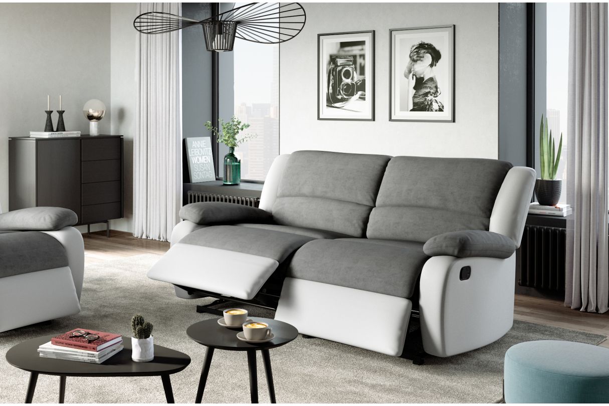 | Libellé | RELAXXO - Canapé relax manuel 3 places avec 2 assises XXL LEO en microfibre et simili - Blanc/Gris |