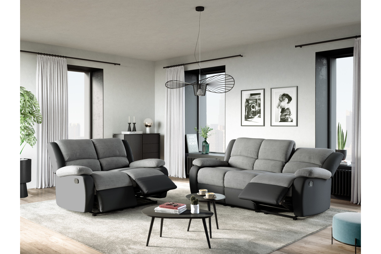 | Libellé | RELAXXO - Canapé Relaxation 2 places Microfibre et Simili LEO - Gris et Noir |