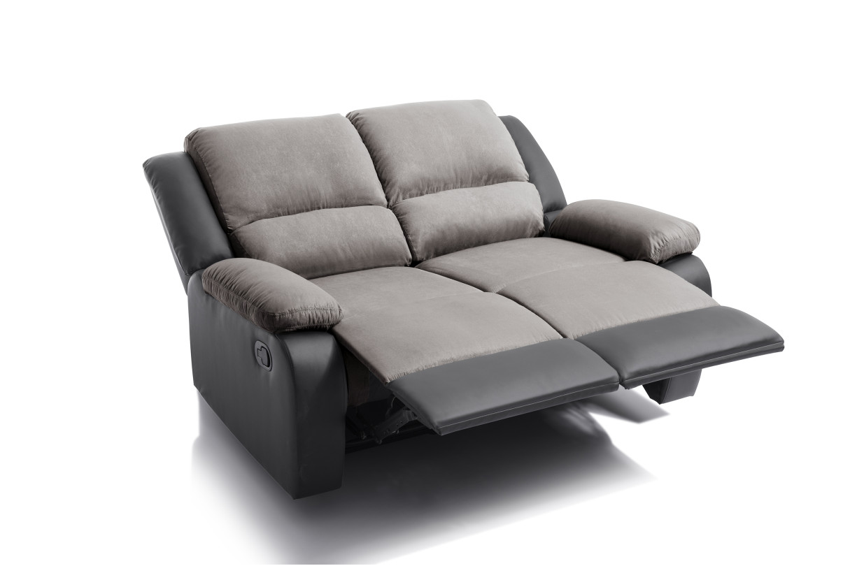 RELAXXO - Canapé Relaxation 2 places Microfibre et Simili LEO - Gris et Noir