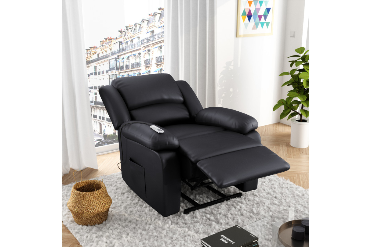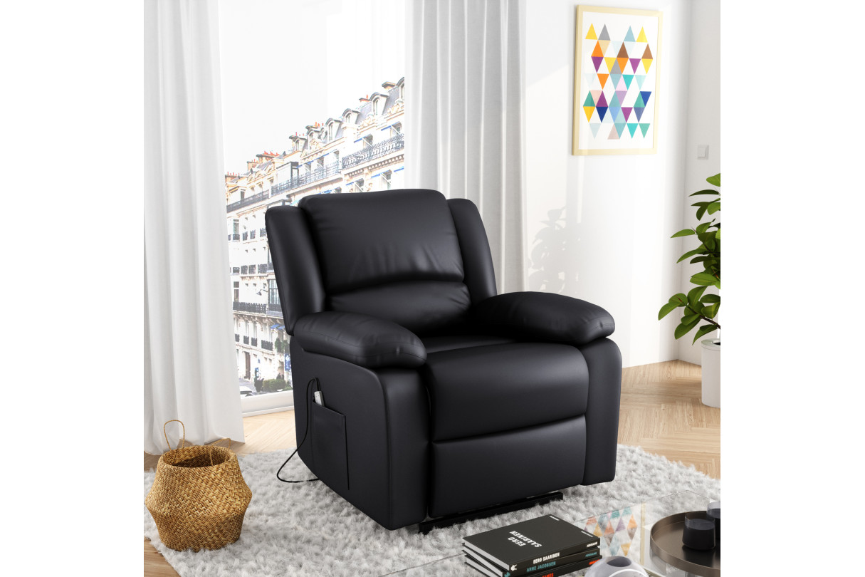 RELAXXO - Fauteuil De Relaxation Electrique Releveur Et Massant En Simili LEO - Noir