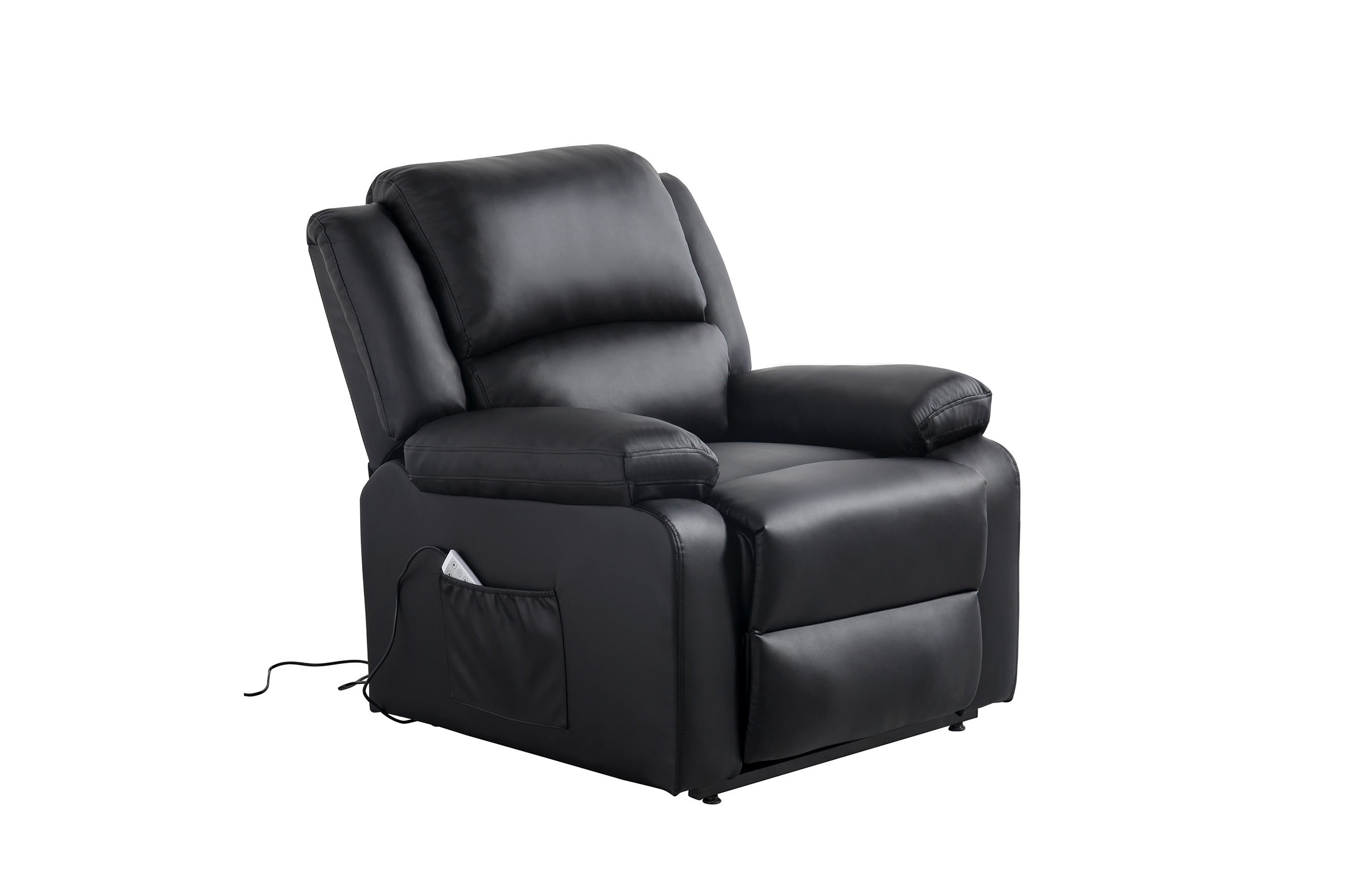 Ce fauteuil dispose des fonctions électrique, releveur et siège massant chauffant, vous permettant de vous relever sans effort. Ainsi, en pressant la télécommande, le fauteuil va s'incliner jusqu'à vous tenir debout et vous permettre de vous lever facilement.