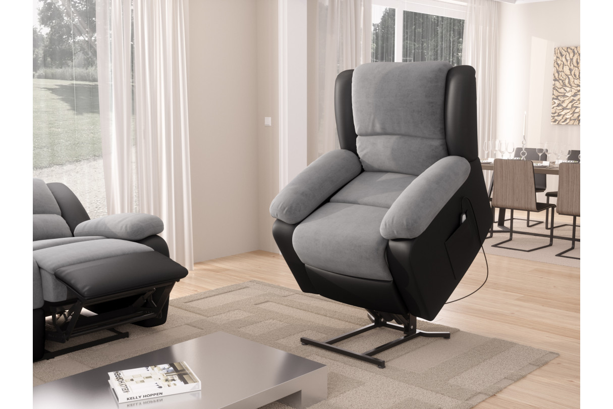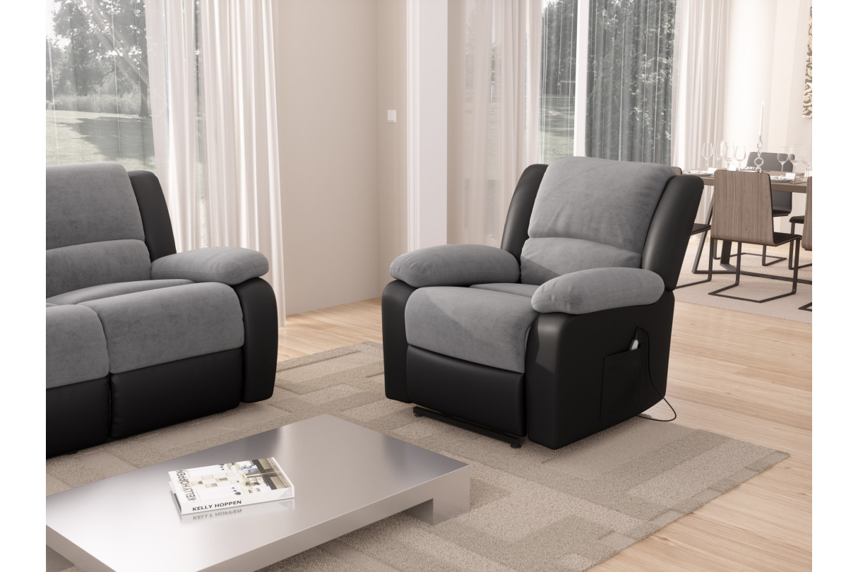 RELAXXO - Fauteuil de Relaxation Releveur électrique 1 place Microfibre et Simili LEO - Gris et Noir