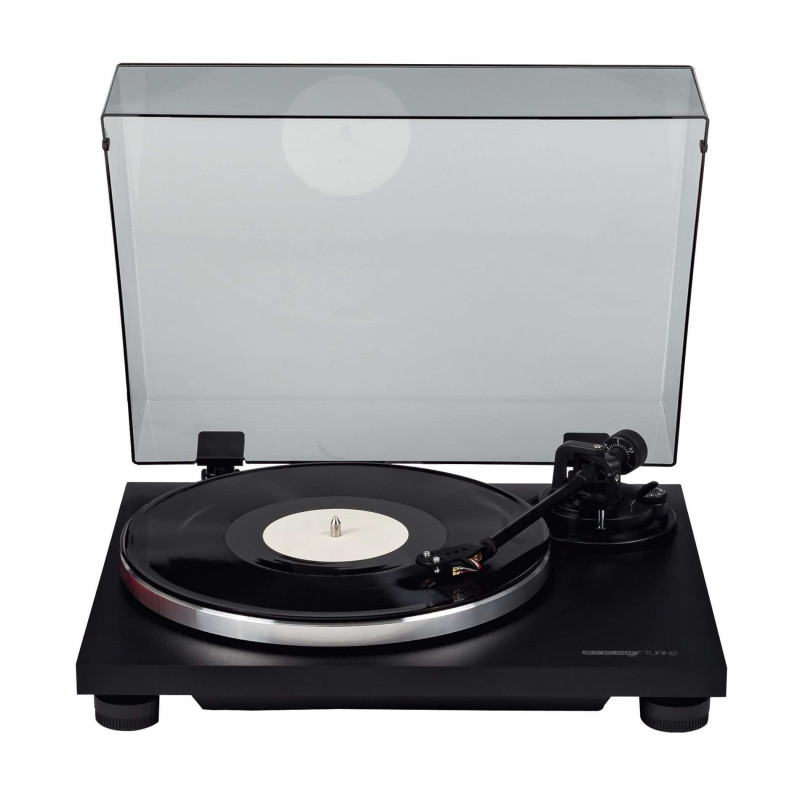 Avec le lancement des TURN2, Reloop accentue son développement en matière de platine vinyle audiophile avec l’enrichissement de la gamme TURN. Ces nouvelles venues dans la gamme du constructeur Allemand sont indéniablement inspirées de son « best seller » la TURN3. Cependant, les TURN2 sont toujours équipées d’un bras de lecture droit mais dépourvues de toutes les fonctions digitales comme leur grande sœur. La TURN2 existe sous 3 colories : noir, rouge et blanc. La TURN2 Black est une platine vinyle audiophile équipée d’un bras droit de type manuelle. Elle est en finition bois et de couleur noir mate. Platine Hi-Fi à courroie Livrée avec cellule HIFI Ortofon OM10 Nouveau bras droit innovant pour des performances optimales Levage manuel du bras Moteur à faible vibration pour une écoute parfaite Sélecteur de vitesse 33 ou 45 tr/min Alimentation DC externe Plateau en aluminium moulé Système anti-patinage Connecteurs RCA dorés et résistants à la corrosion Interrupteur d'alimentation pratique sur le côté inférieur Le pleurage et scintillement : 0,2% WRMS Rapport S/N : > 65 dB Plateau en aluminium, diamètre 300mm et 550g Bras droit : longueur 224mm, avance (overhang) 19mm, angle d’erreur 25°, force de suivi 1,5g Poids applicable sur la cellule : 4 – 6g Anti-patinage : 0 – 3g Connecteurs OUT : RCA PHONO (plaqué or) et masse Alimentation externe : DC 12V, 500mA Consommation électrique : 6W Accessoires fournis : cellule Ortofon OM10 montée sur porte-cellule, contrepoids, capot avec charnières, feutrine, plateau en aluminium, adaptateur 45T, câble RCA et alimentation externe avec fiches interchangeables internationales (UK / EU / US) Dimensions avec capot (L x P x H) : 420 x 340 x 121 mm Poids: 4,6 kg