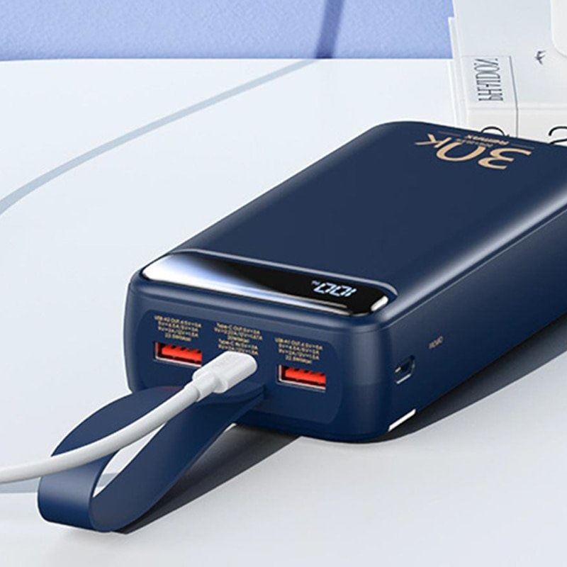| Libellé | Remax RPP-522 30000mAh Power Bank 2x USB 20W + 22,5W PD USB-C QC Charge rapide LCD Bleu |