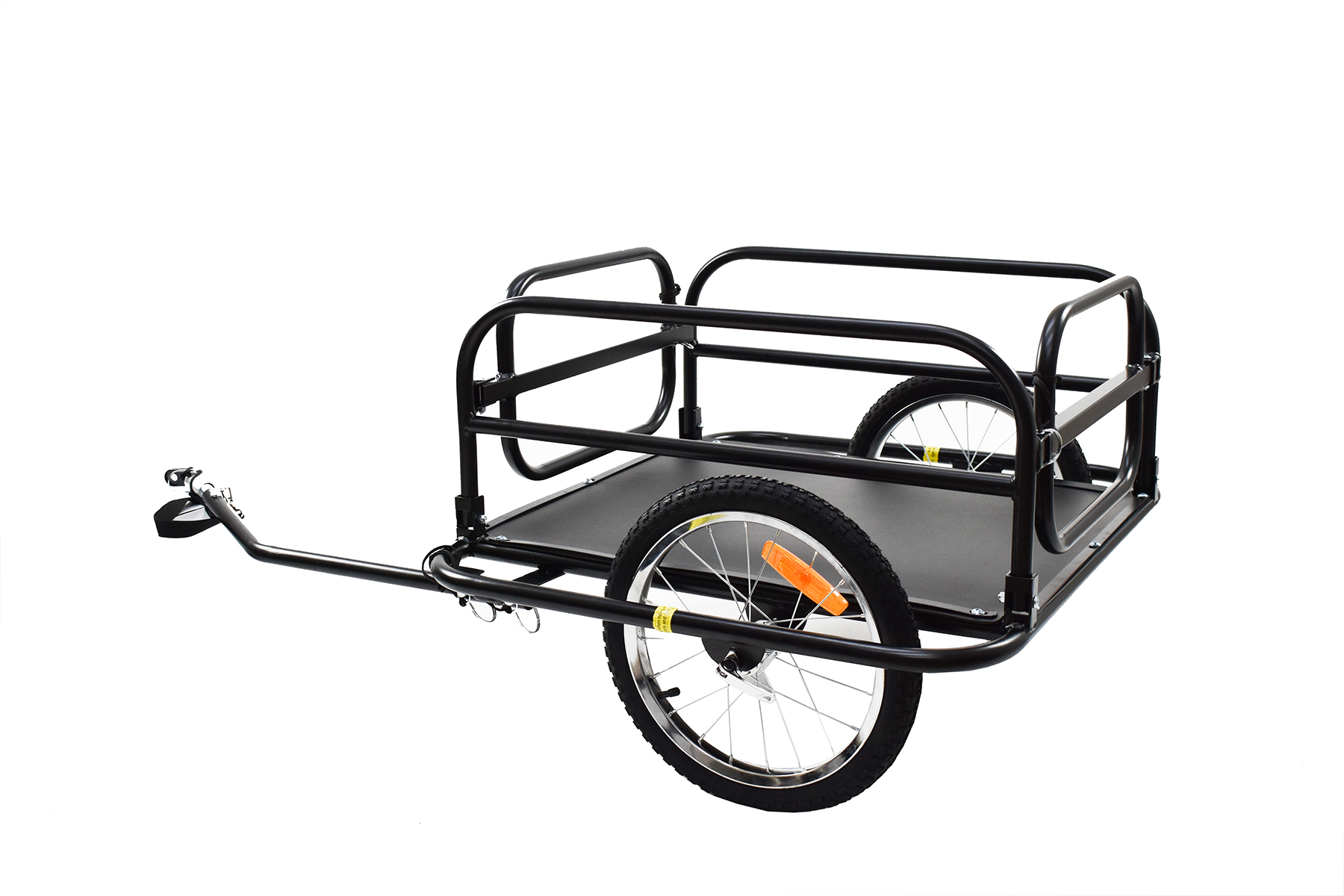 Remorque pliable pour vélo Storag, plateau de 67 x 56 x 34 cm (L x l x H) et d'une charge max de 40 Kg offre de nombreux avantages grâce à sa flexibilité. Sa paroi arrière rabattable permet de transporter des objets encombrants. Maniable et facile à tracter grâce à ses roues 16'', elle est d'un usage très flexible. Entièrement repliable, elle occupe peu de place pour le stockage.
