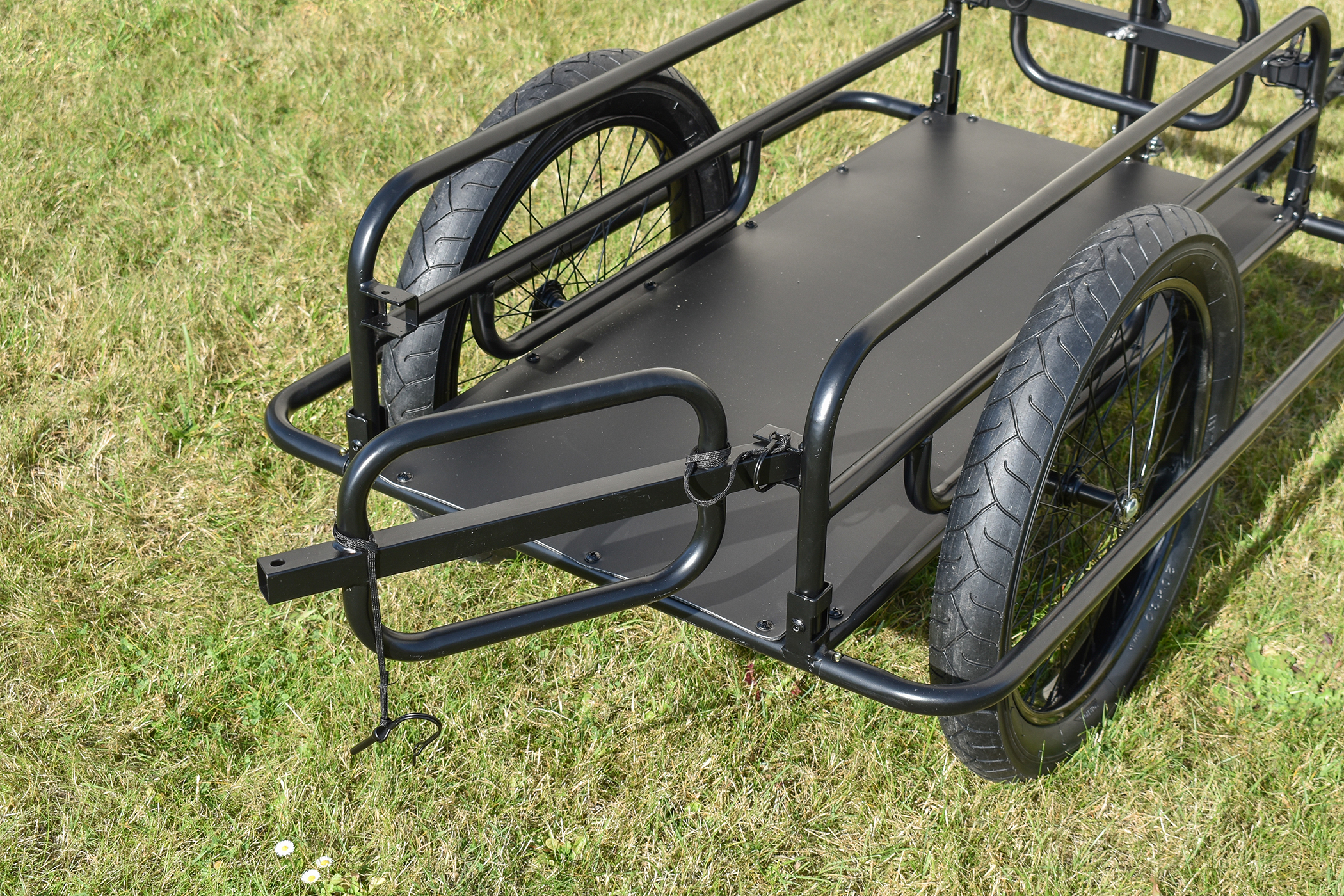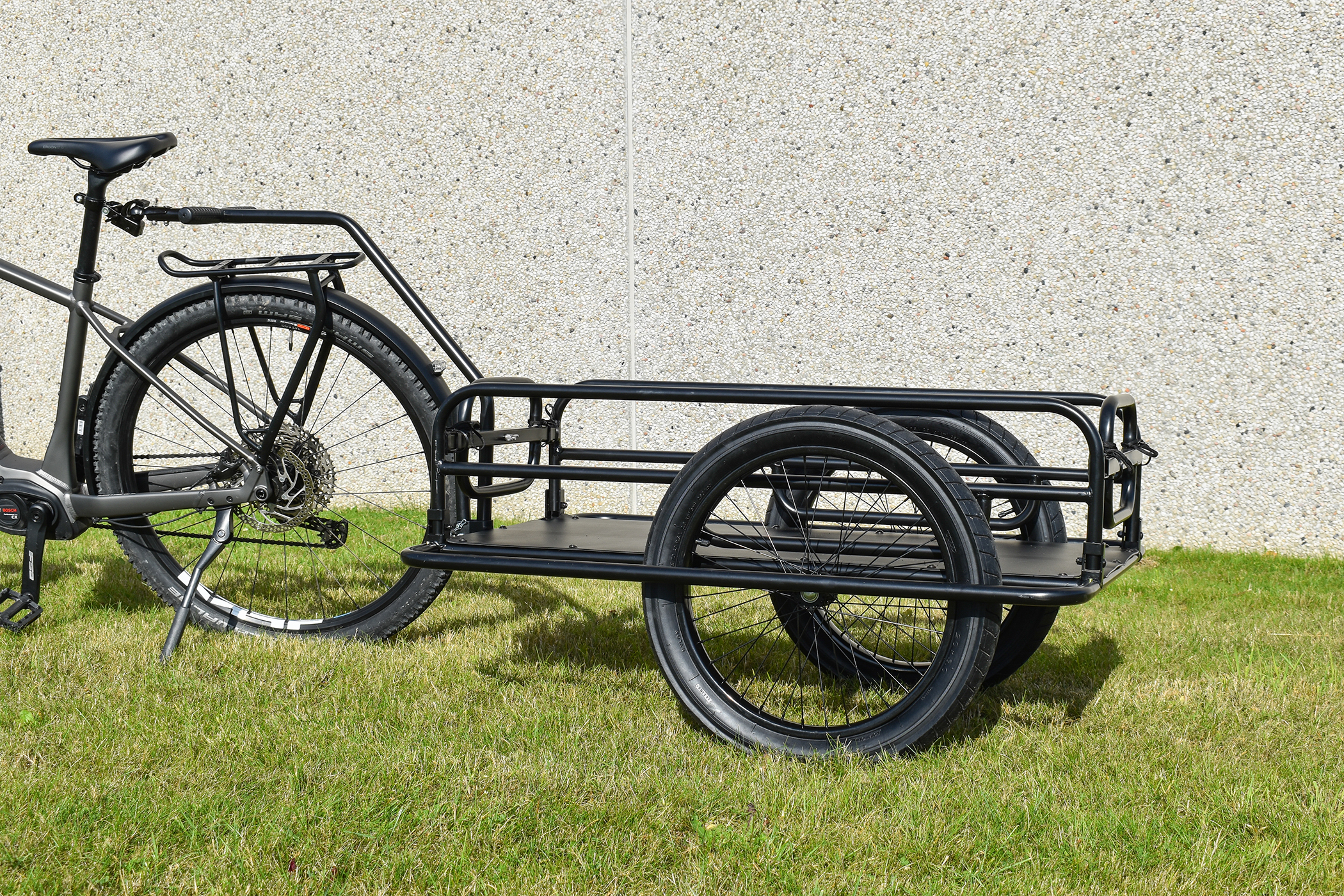 Remorque pliable Storag avec attache sur tige de selle vélo. Plateau de 101 x 43 x 25 cm (L x l x H)et charge max de 80kg. Offre de nombreux avantages grâce à sa flexibilité. Maniable et facile à tracter grâce à ses grosses roues de 17". Entièrement repliable et démontable, elle occupe peu de place pour le stockage.
