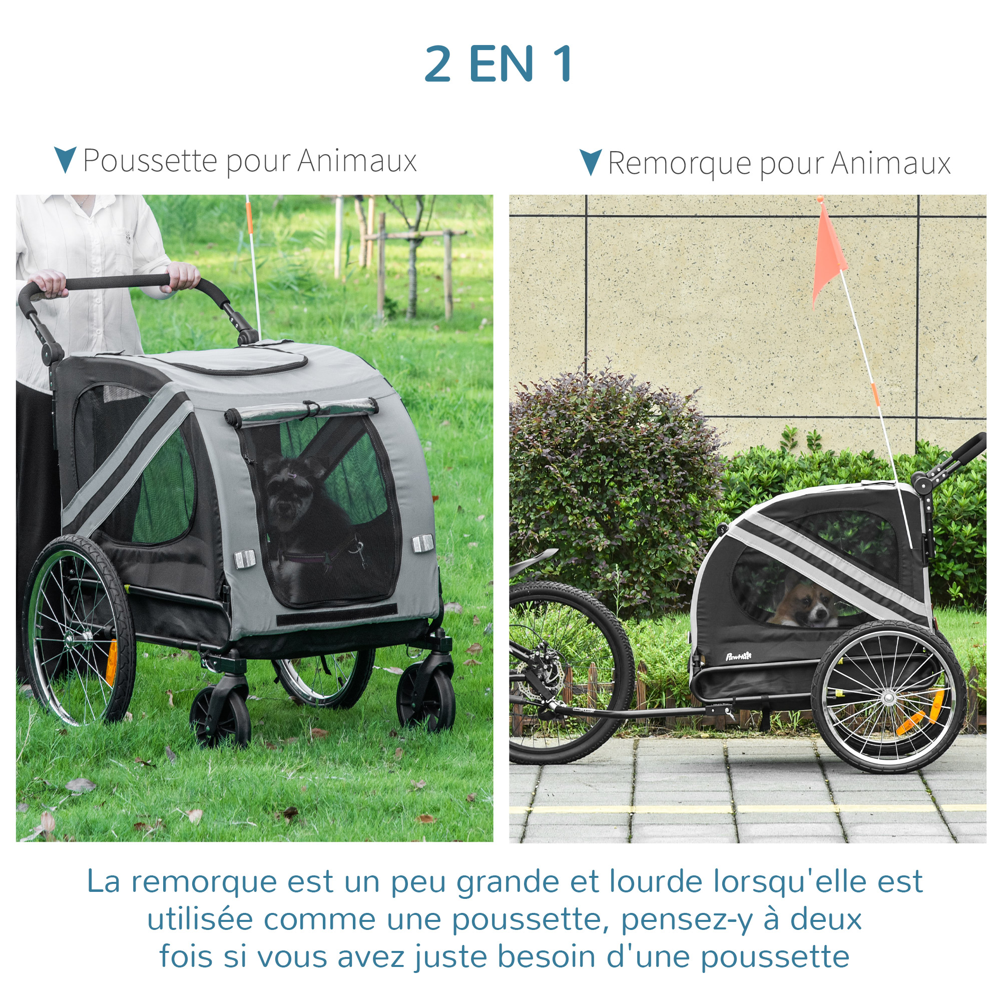 - Remorque vélo 2 en 1 : remorque à vélo ou poussette pour animaux