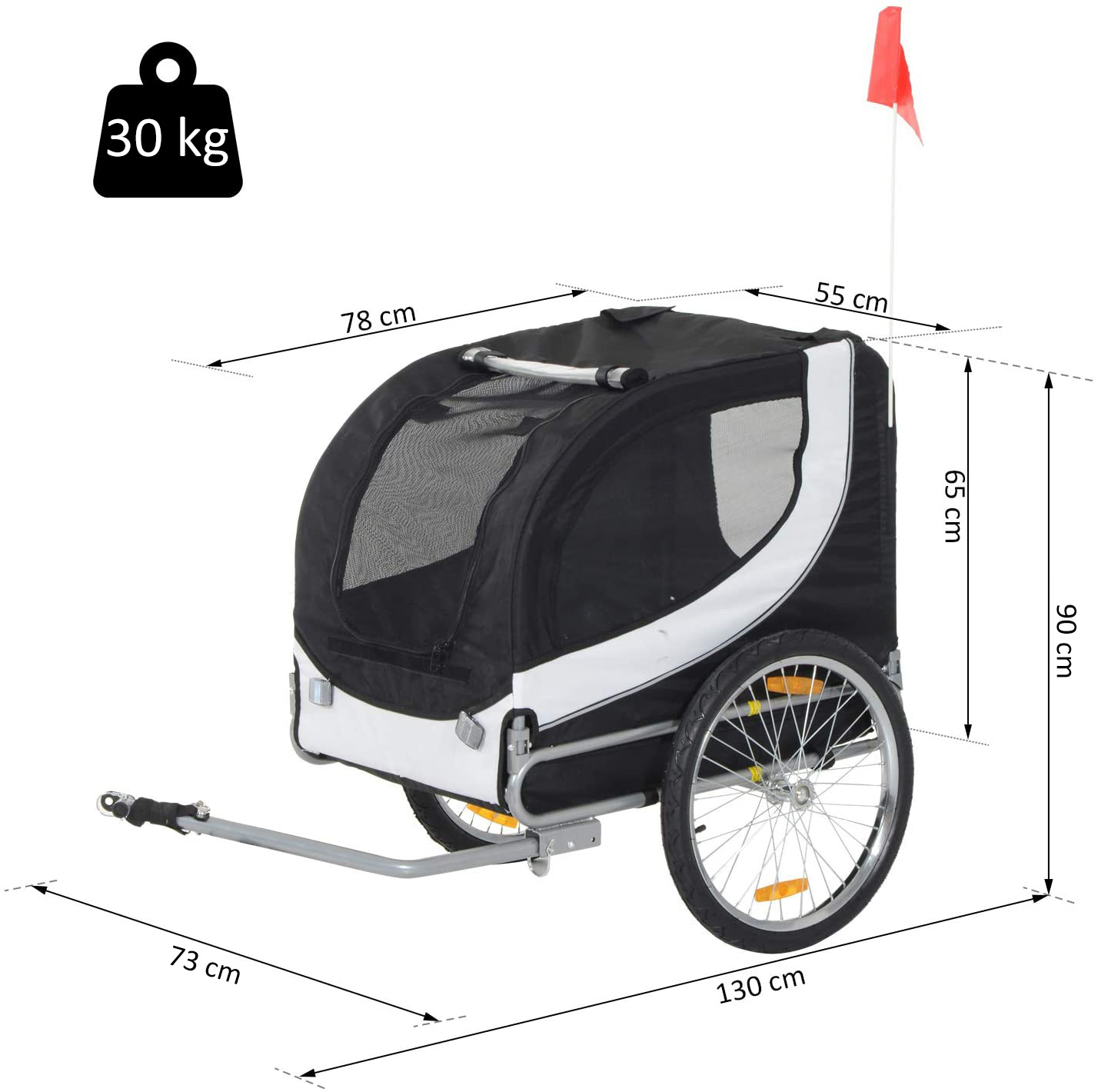 Remorque velo pour chien animaux avec drapeau et 8 reflecteurs blanc et noir