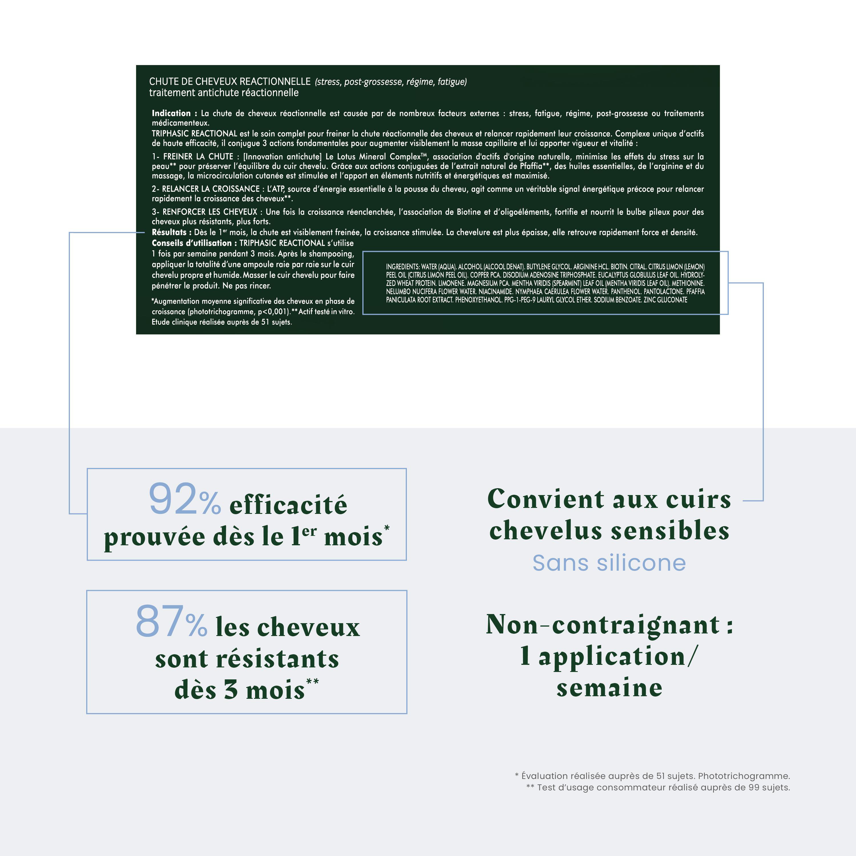 | Libellé | René Furterer Traitement antichute réactionnelle - Solution 2-en-1 chute & pousse des cheveux - TRIPHASIC REACTIONAL 12 u |