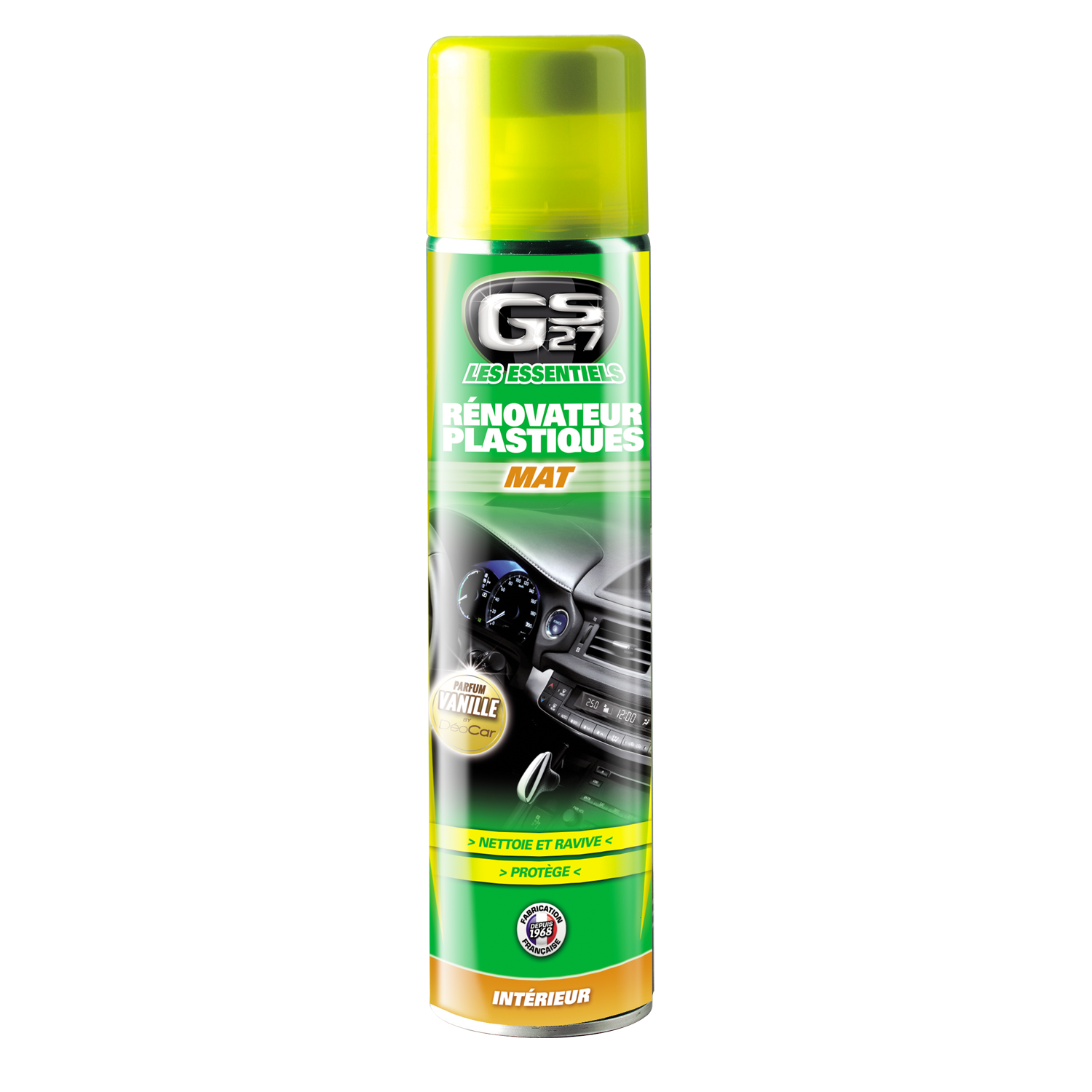 Le Rénovateur Plastiques Mat GS27® Les Essentiels permet d’entretenir facilement tous les plastiques intérieurs et extérieurs de votre voiture. Sans silicone, il rénove et ravive la couleur des plastiques ternis par le temps. Avec sa finition mate, il dépose une fine pellicule antistatique qui empêche les poussières d’adhérer. Il laissera un agréable parfum vanille dans votre habitacle.