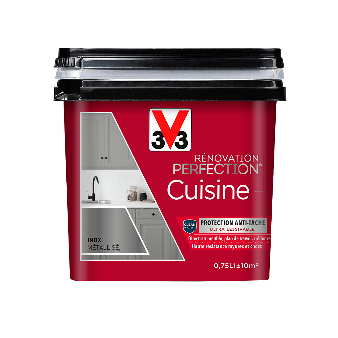 LA PEINTURE HAUTE RÉSISTANCE POUR MODERNISER VOTRE CUISINE. Envie de donner un nouveau style à votre cuisine ? Changez la couleur de vos meubles, appareils électroménagers, crédences ou plans de travail grâce à la peinture RÉNOVATION PERFECTION ®. Ultra-adhérente, anti-taches et anti-chocs, elle résiste aux conditions difficiles de la vie quotidienne d’une cuisine. RÉSULTAT IMPECCABLE . Tendu parfait . Finition durable dans le temps HAUTE RÉSISTANCE . Rayures, frottements, chocs . Projections d’eau, condensation . Chaleur jusqu’à 100°C (convient pour mur derrière plaque cuisson) FACILE À VIVRE . Application directe, pas besoin de poncer, ni décaper . Adhérence sur tous supports . Lessivable au quotidien