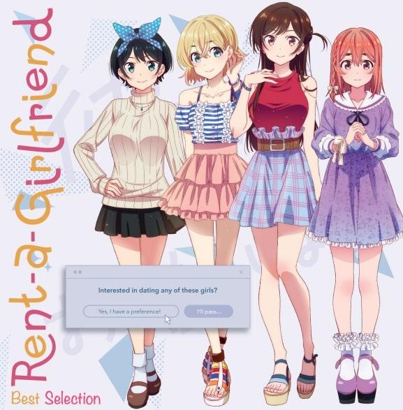 Rent-a-Girlfriend est un manga Shonen de Reiji Miyajima, sorti à partir du 12 juillet 2017. On compte 35 tomes pour le manga et 3 saisons soit 36 épisodes pour l'adaptation en série animée. Dans cette Rom-Com Harem, on suit la vie de Kazuka Kinoshita, un jeune étudiant de 20 ans qui vit à Tokyo.