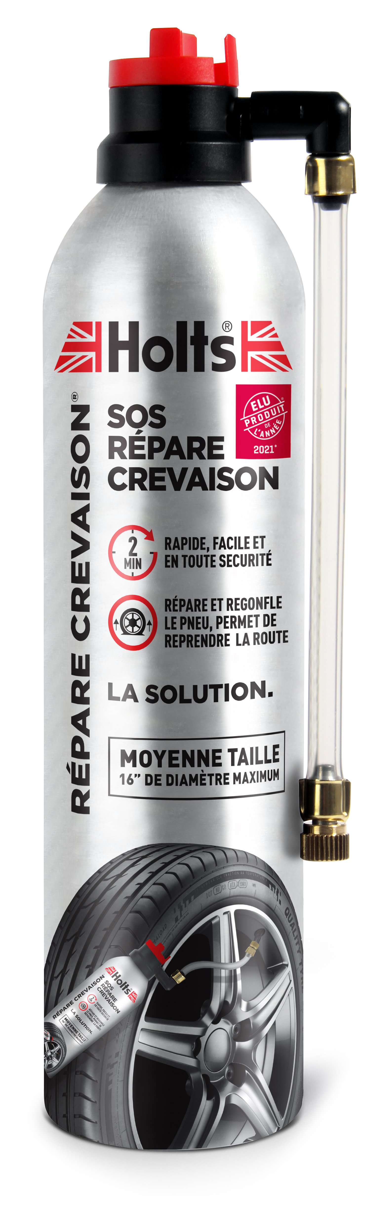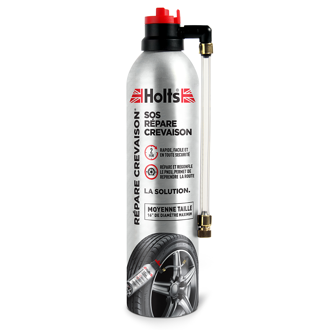 Holts - Répare-Crevaison 400 ml Le Répare Crevaison Holts est un système de réparation provisoire d’urgence rapide sûr et sans effort. En quelques secondes son mélange de gaz et de latex recouvre l’intérieur du pneu crevé, le répare et le regonfle, le tout sans l'endommager afin de le faire réparer ensuite par un spécialiste. Avantages : • Répare et regonfle sans outil sans démontage • Mélange gaz/latex répare et regonfle le pneu crevé en 2 min. chrono ! • Système exclusif 1/4 de tour pour un transfert automatique du produit • Formule non toxique, n’endommage pas les pneus • Le pneu peut être nettoyé facilement après utilisation du produit • Compatible avec les pneus équipés de capteurs de pression