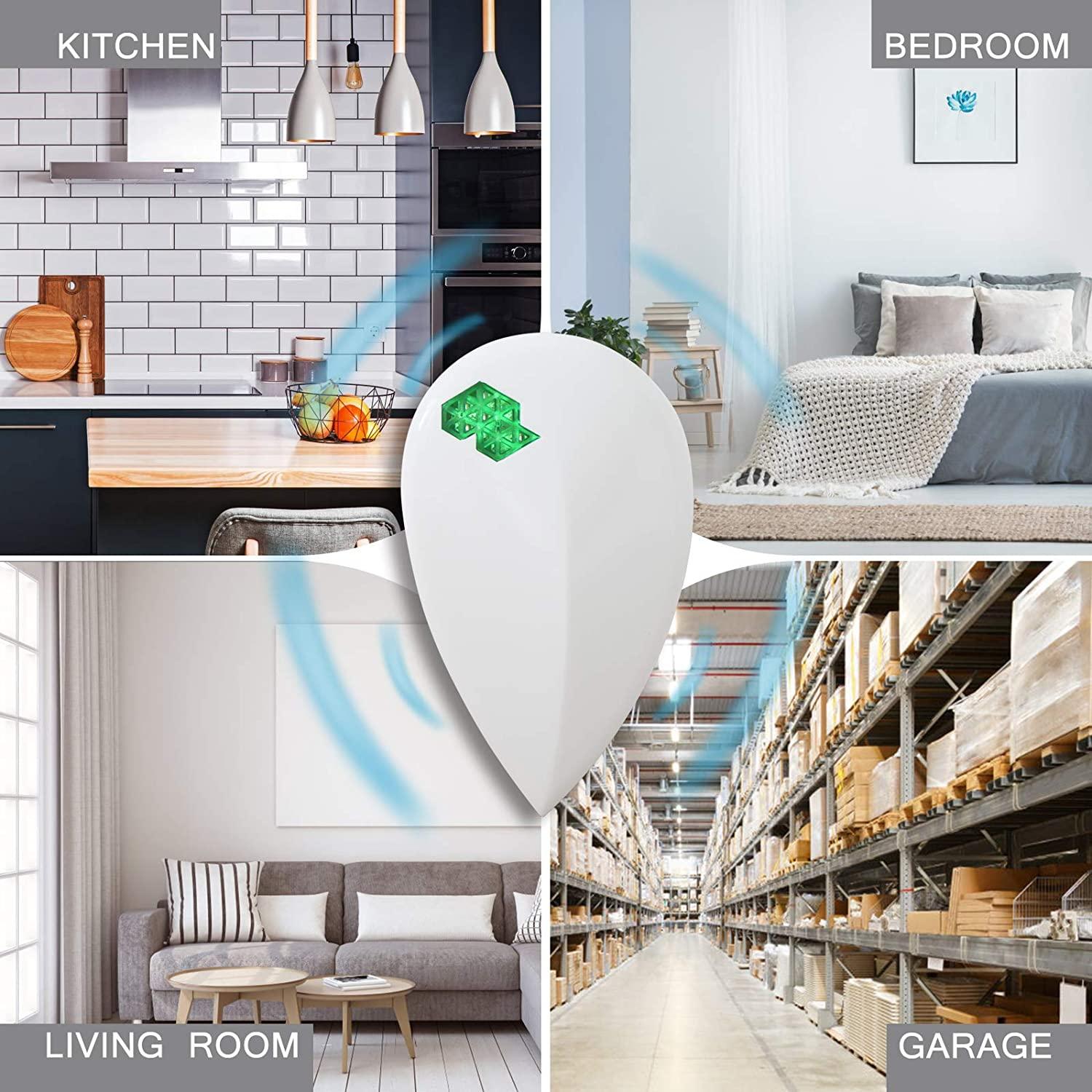 Grande couverture : Le répulsif anti-insectes peut couvrir efficacement une superficie allant jusqu'à 80-120 m2 par unité. Il est recommandé d'installer 1 unité dans chaque pièce. Veuillez noter que les ondes ultrasonores ne peuvent pas traverser les matériaux solides et les murs, alors assurez-vous qu'il n'y a pas de meubles ou d'autres objets devant eux et gardez les portes et fenêtres fermées lors de leur utilisation, afin que les ondes ultrasonores puissent fonctionner de manière optimale.