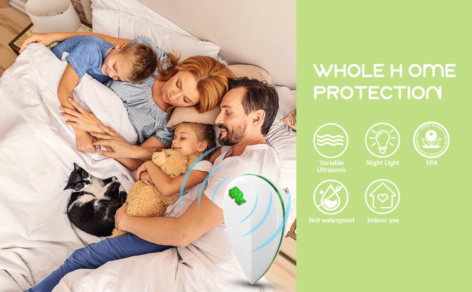Inoffensif et sûr : Éliminez les moustiques, les mouches, les araignées, les fourmis, les cafards, les souris et autres parasites en émettant des ondes ultrasoniques. Vous pouvez éviter l’exposition à des poisons et à des produits chimiques nocifs pour la santé ainsi qu’aux insectes et rongeurs morts dans votre maison. Ce produit est totalement inoffensif pour les humains et les animaux domestiques.