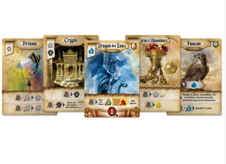 Au long de la partie vous récolterez, manipulerez et consumerez les Essences qui composent la magie du monde, pour créer de mystérieux Artefacts, faire surgir du néant d’étranges créatures surnaturelles, conquérir de terribles Lieux de Puissances et invoquer d’immenses Dragons pour terrasser vos adversaires !
