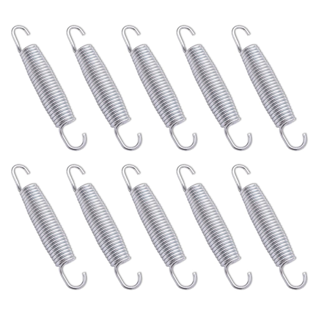 Si vous êtes inquiétés du fait que les ressorts de votre trampoline sont usés ou cassés ou si vous êtes à la recherche des ressorts pour installer votre trampoline, nos ressorts, fabriqués en fer zingué, seront le meilleur choix pour le remplacement des vieux ressorts et pour l'assemblage. Grâce à sa finition résistante à la rouille et au traitement thermique professionnel, les ressorts sont très durables. La livraison comprend 10 ressorts de trampoline.